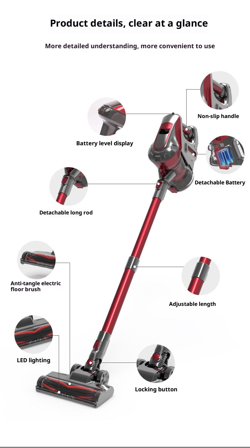 Домакинска безжична прахосмукачка с голяма мощност 180 W