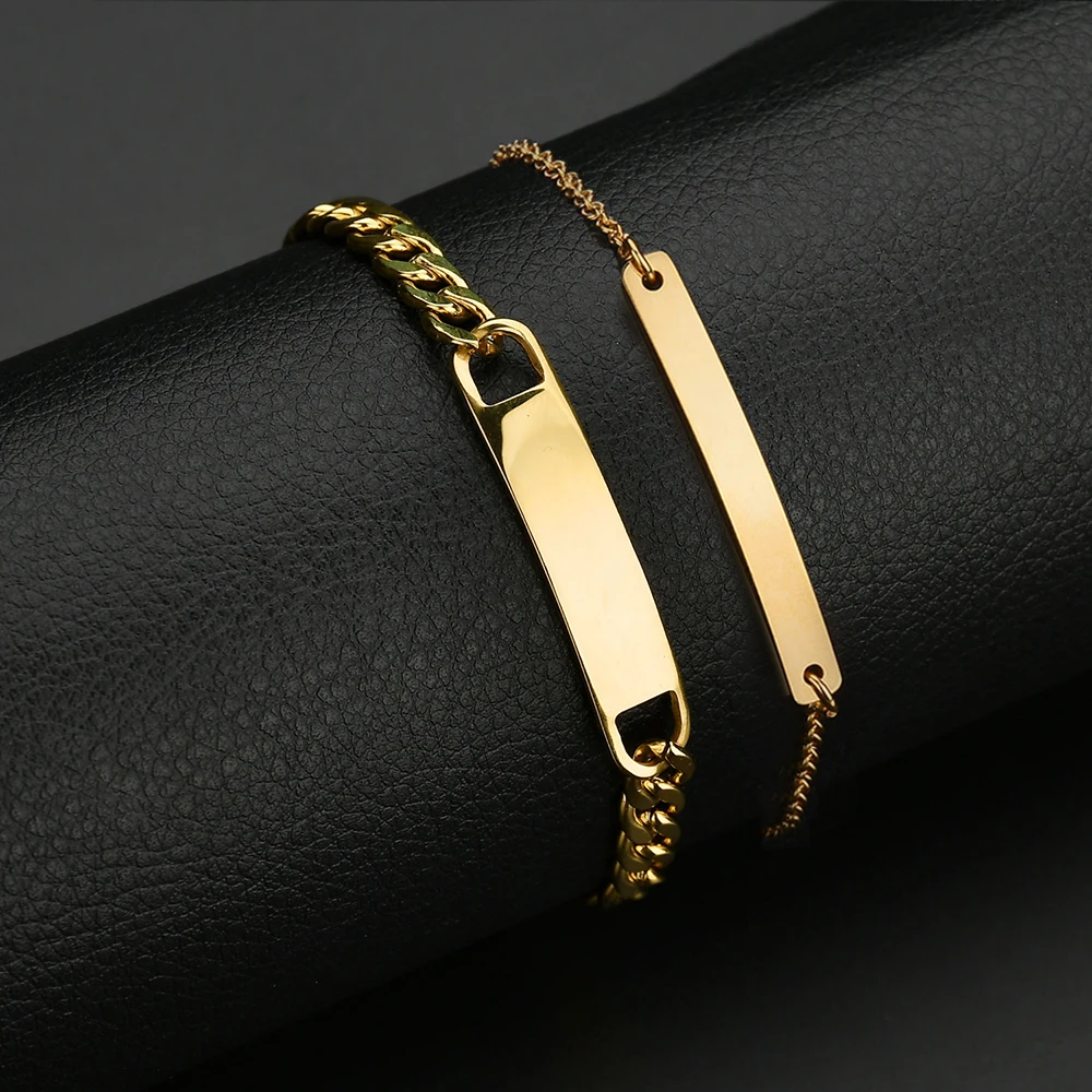 Nextvance Персонализирана гравирана табелка за двойка Гривна от неръждаема стомана с верижка за идентификация за влюбени, подарък за Свети Валентин
