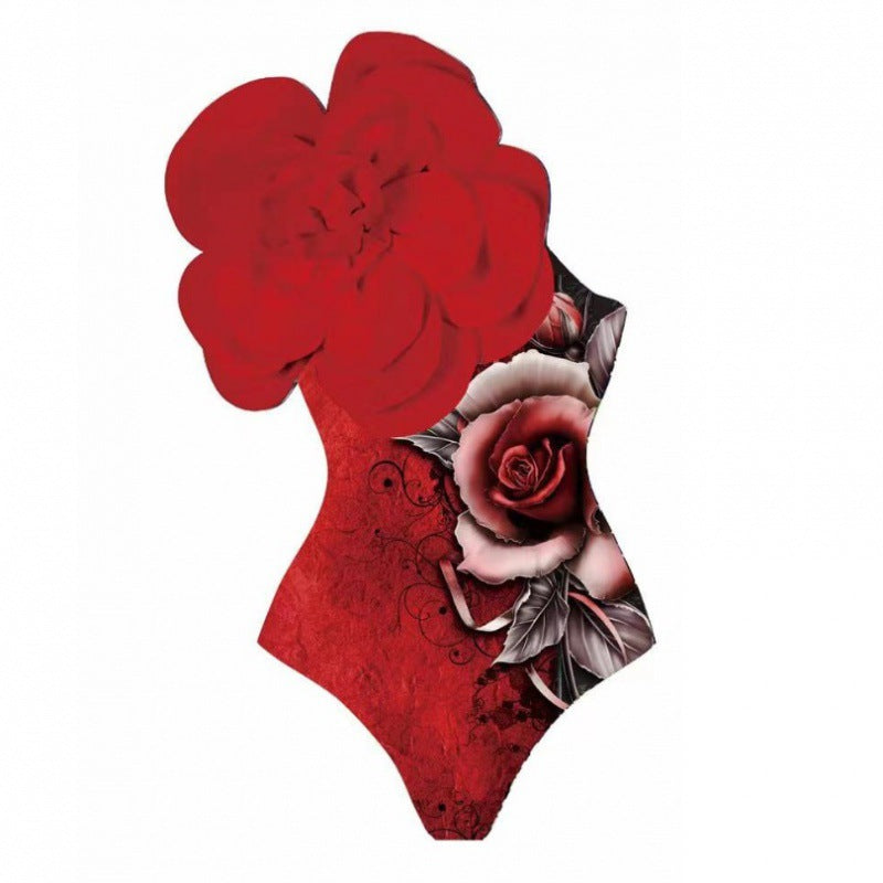 Big Flower Decoration Sexy Print Swimsuit Outfit Women's Top Skirt