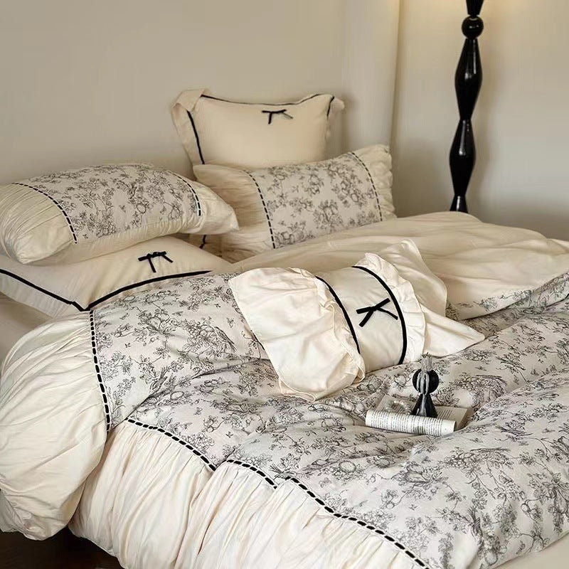 French Vintage Style Autumn And Winter Thickening Brushed Warm Four-piece Lace Set