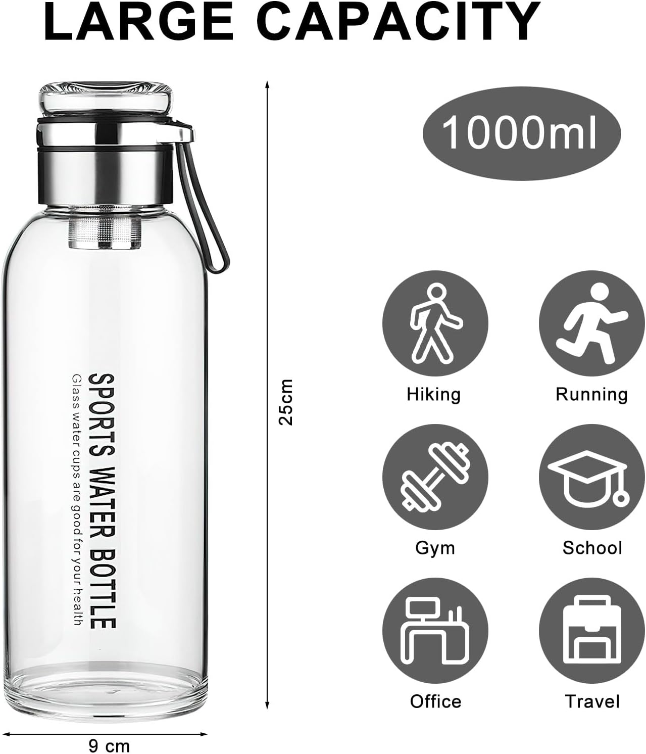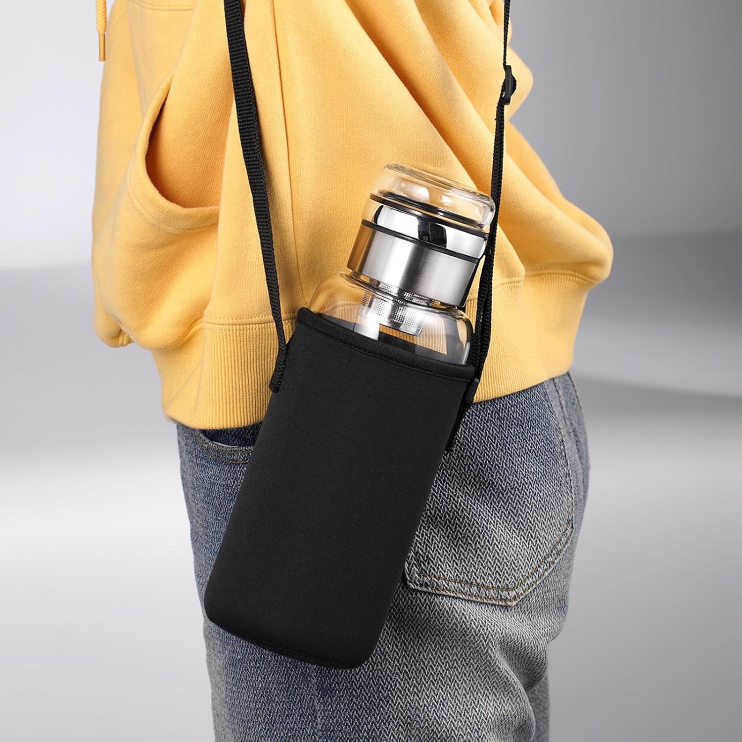 Premium Borosilicate Glass Water Bottle with Infuser & Carry Strap