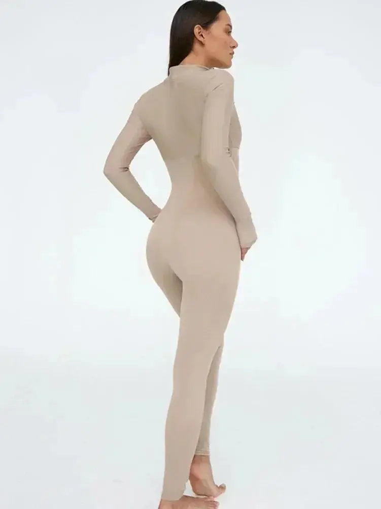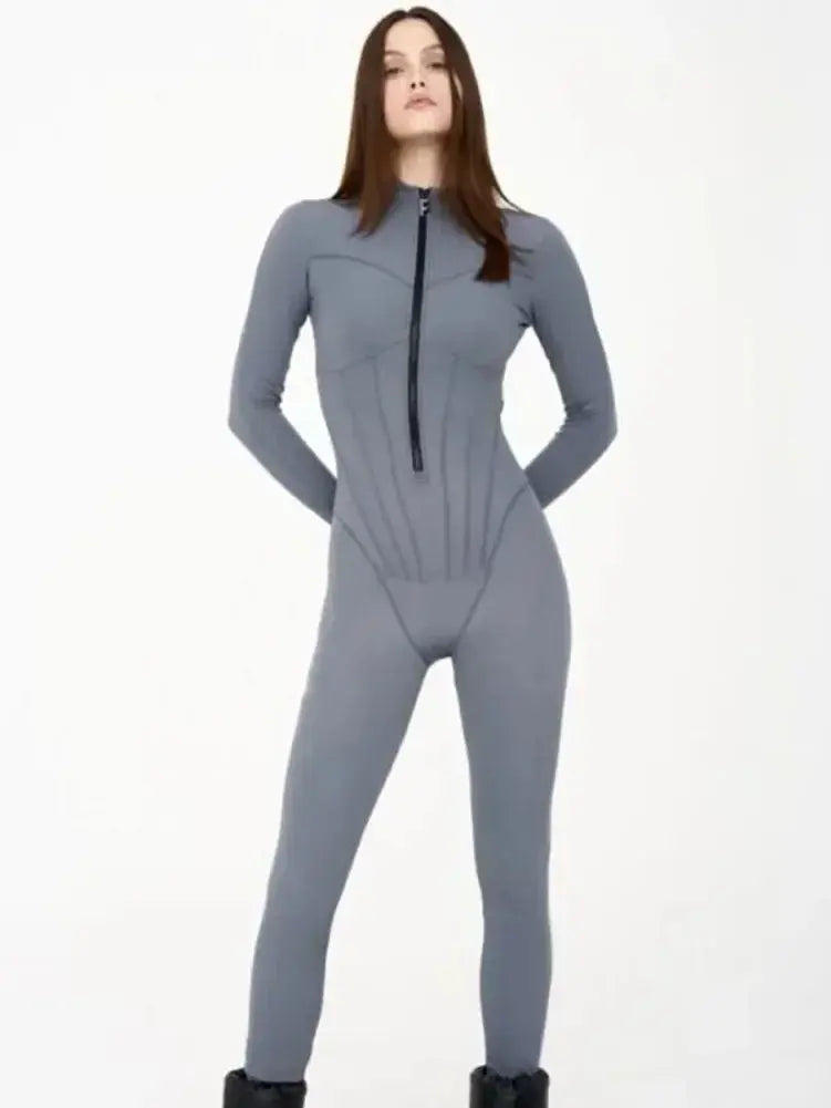 Sexy Elegant Women’s Zip-up O-neck Long Sleeve Jumpsuit – Streetwear Autumn Overalls, Fitness Sports Bodysuit for Women