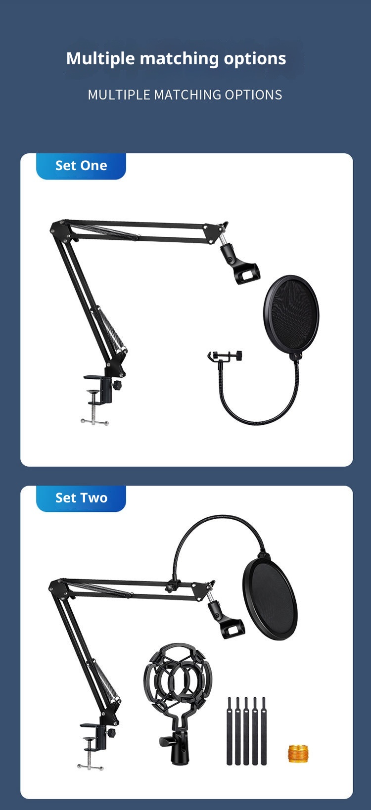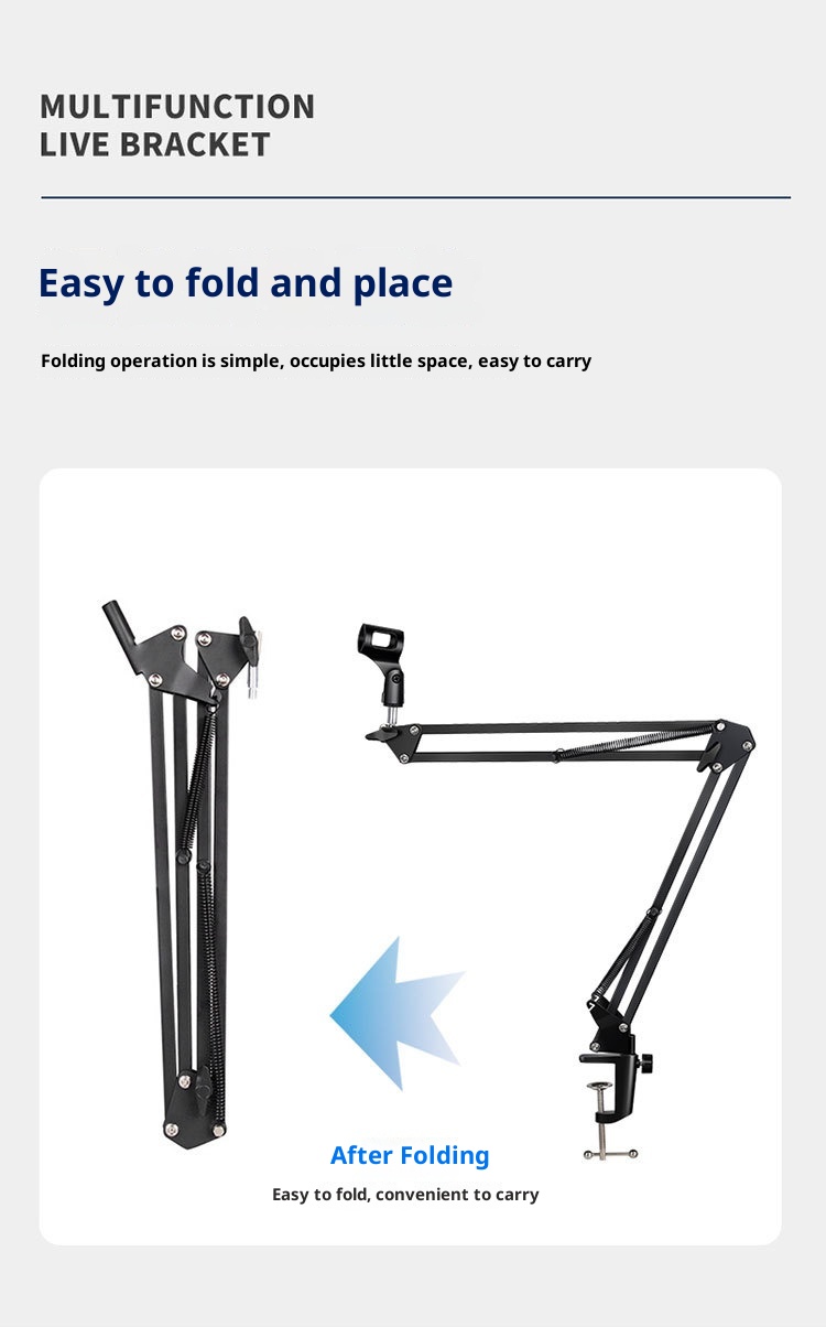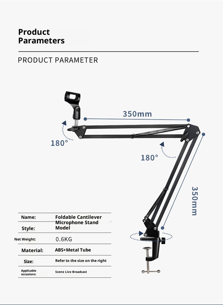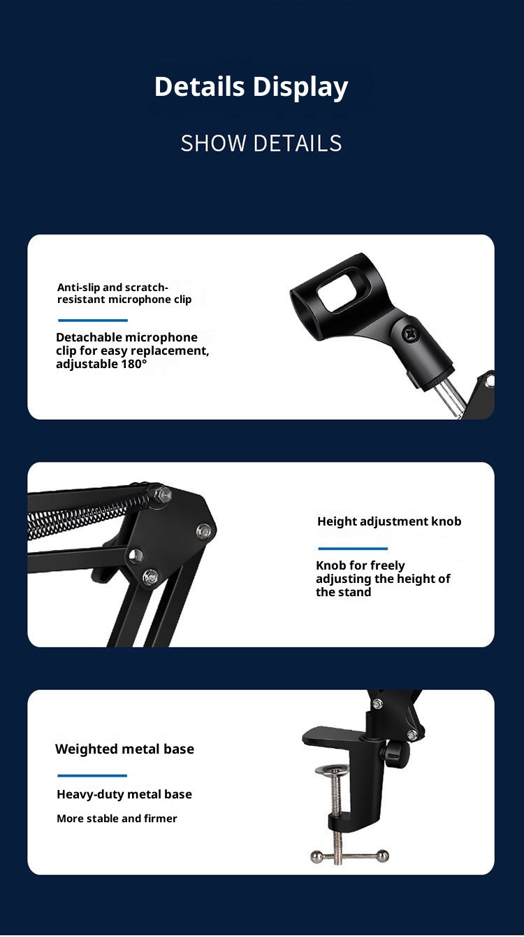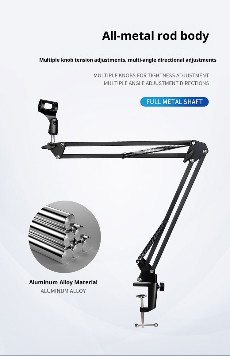 Produktuaren informazioa:Zehaztapena: lau traje beltz Mota: mikrofonoaren euskarria Materiala: ABS metalezko hodia Enbalatzeko zerrenda: 1* Mikrofono-euskarri multzoa Produktuaren irudia: Irakurri gehiago
