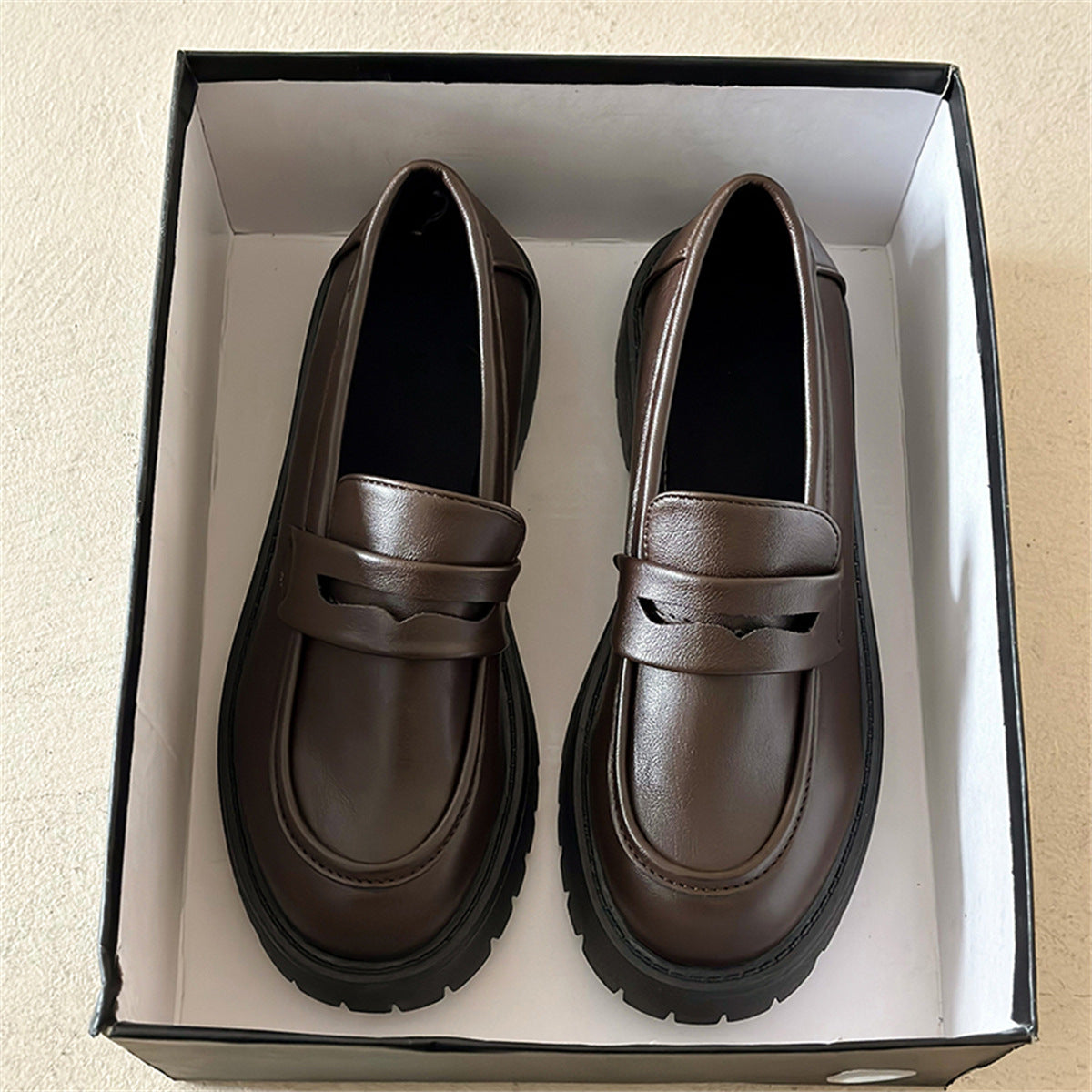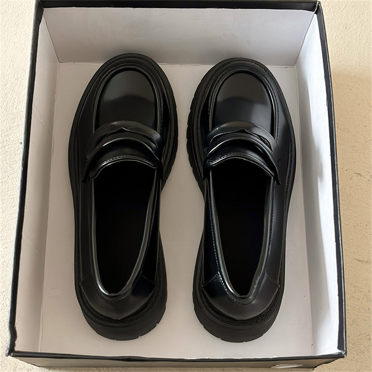 Emakumeentzako larruzko oinetako berriak, estilo britainiarreko plataformako takoi lodiarekin