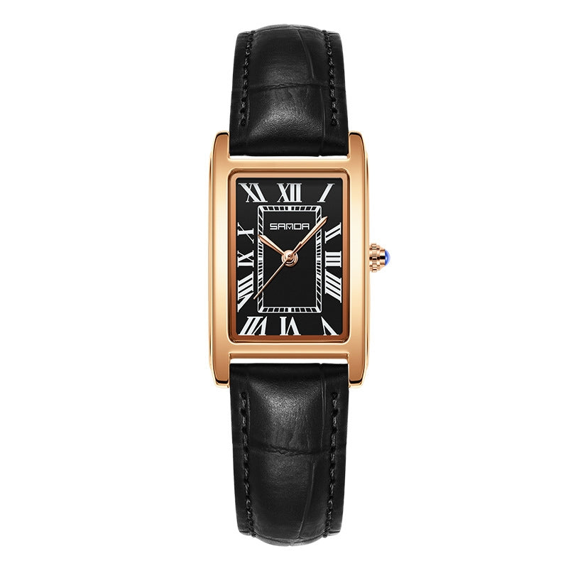 Emakumeentzako erloju karratu iragazgaitz berria, kuartzo sinplea, hiru pineko erromatar literala
