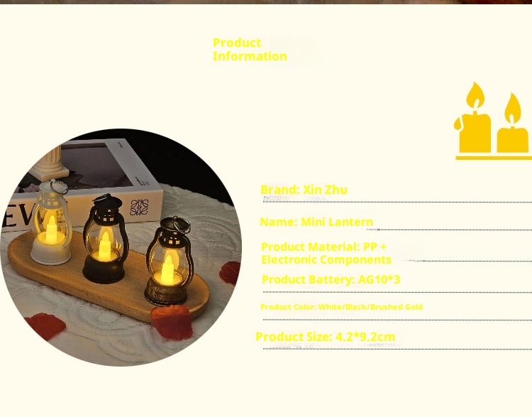 Información do produto:Cor: dourado/negro/branco Material: PP Tamaño: Mini lanterna bronce, mini lanterna negra, mini lanterna branca Proceso: Outro Lista de... Ler máis