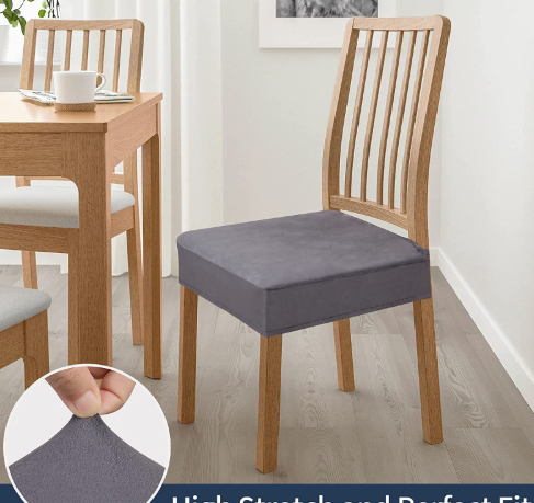Funda de sela de cadeira de veludo elástico Silver Fox, lavable, resistente ao po e ás manchas