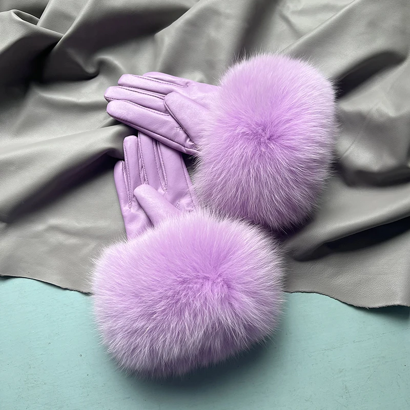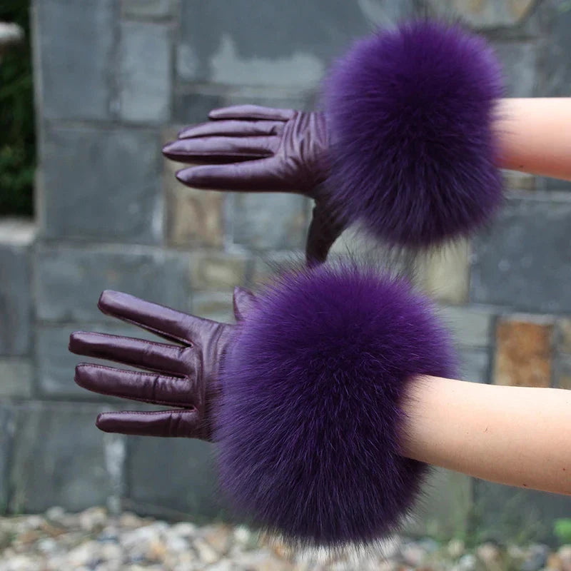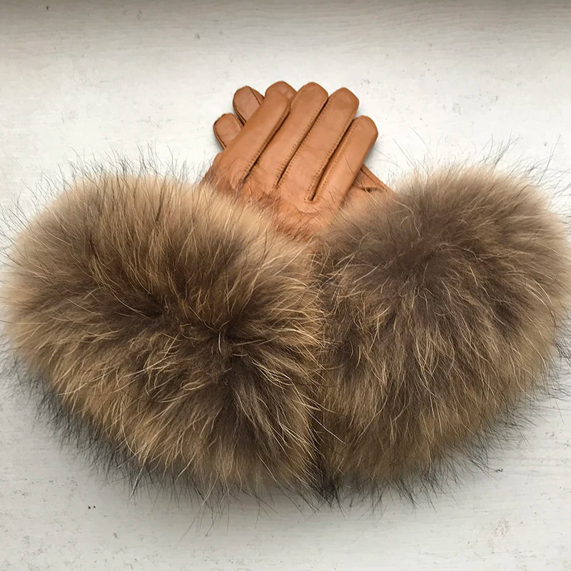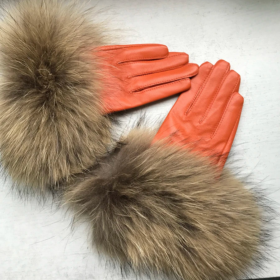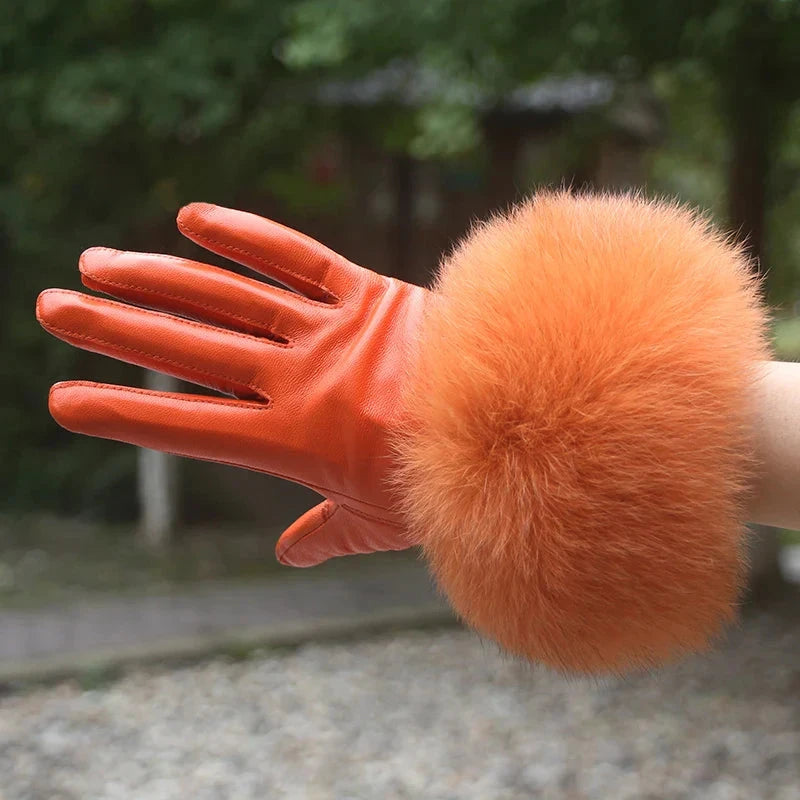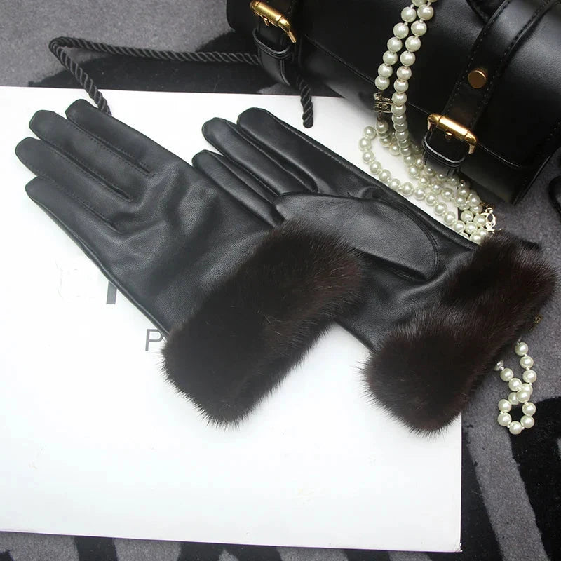 Luvas de coiro de ovella auténtica para muller