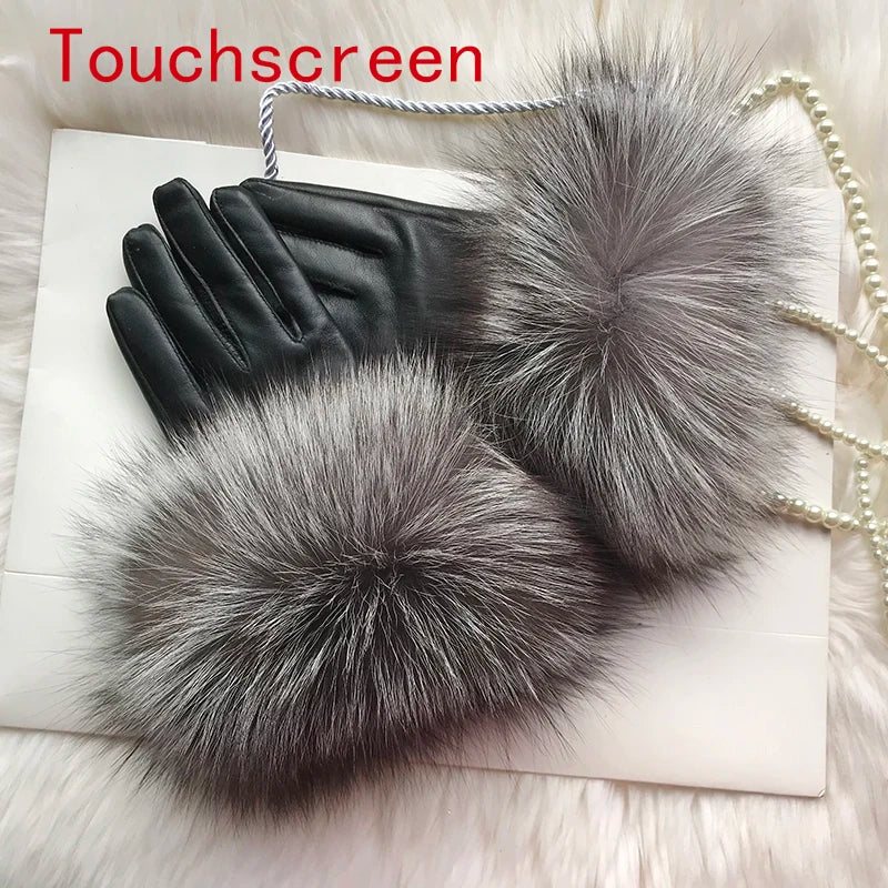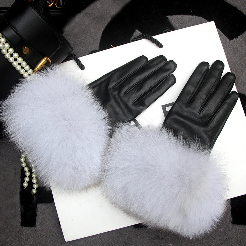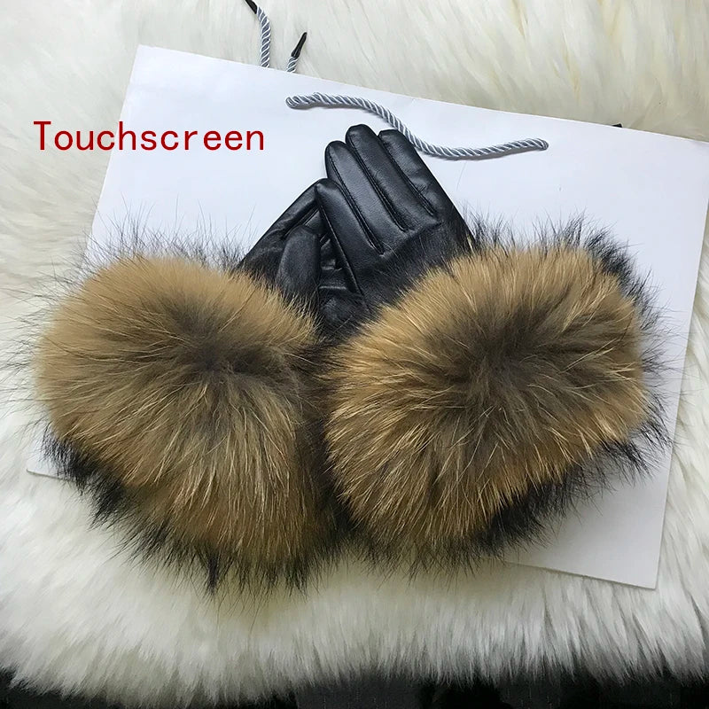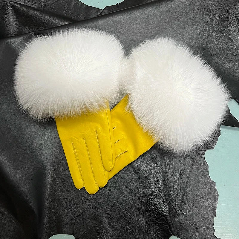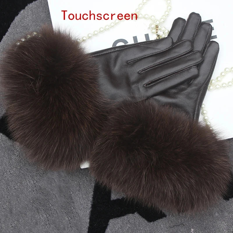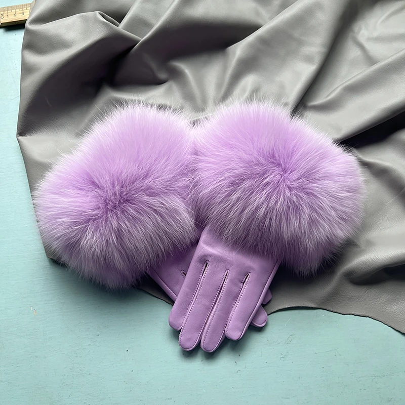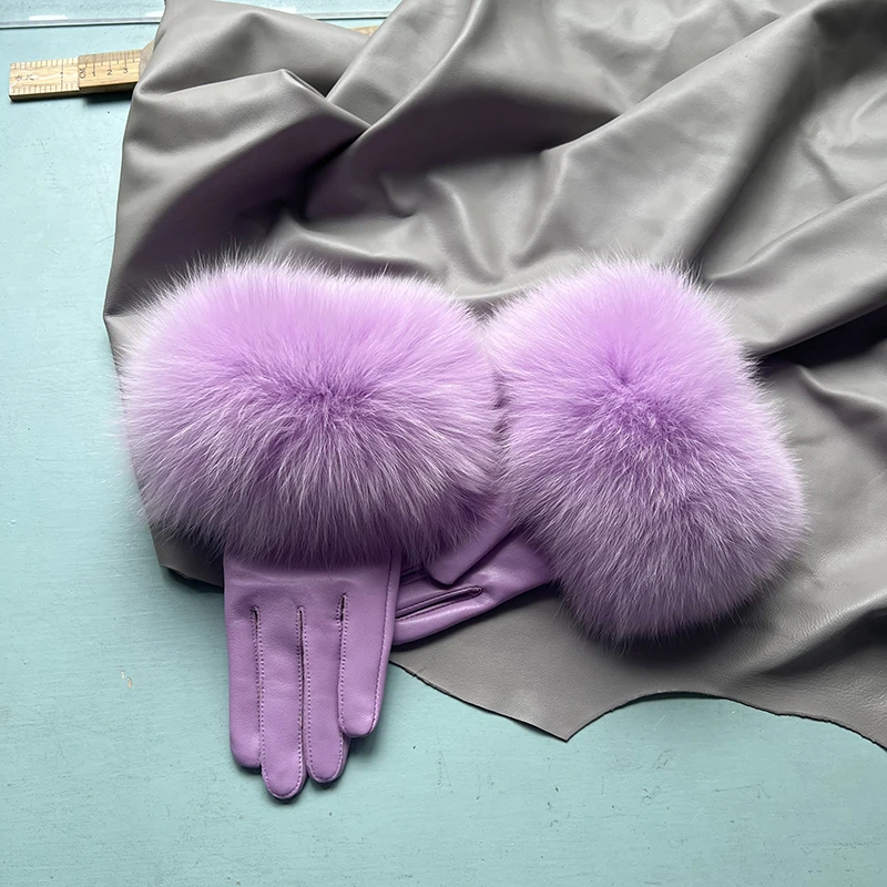 Luvas de coiro de ovella auténtica para muller