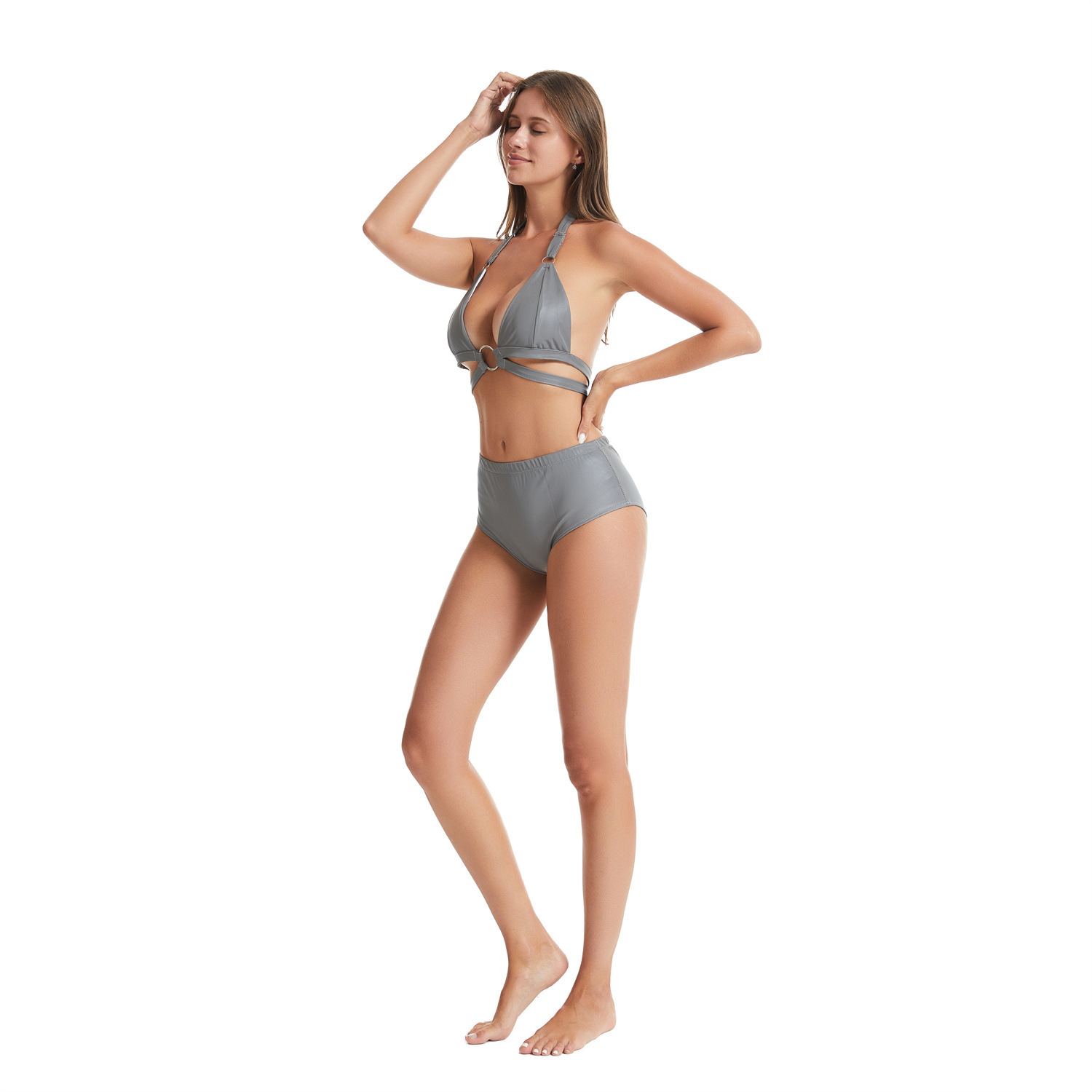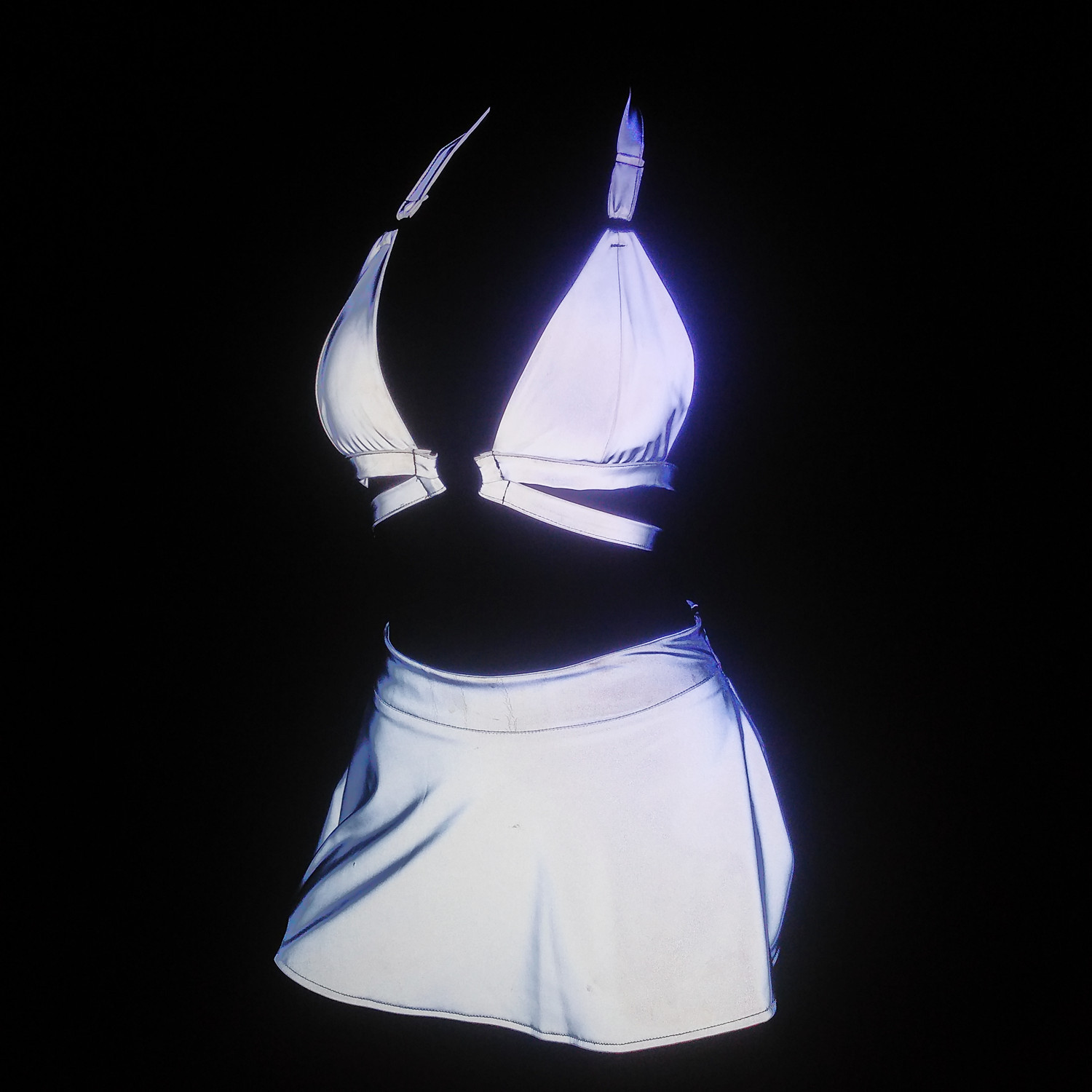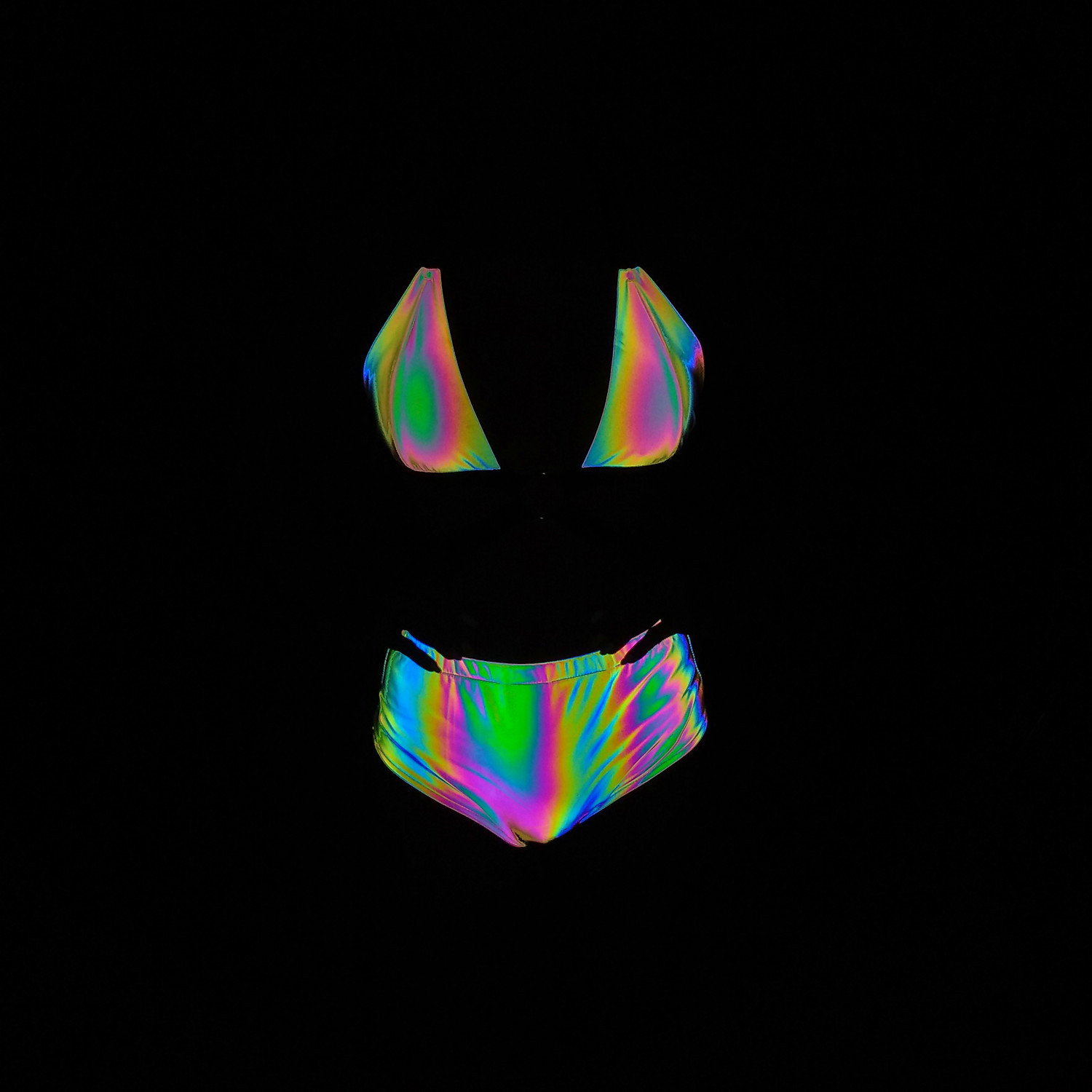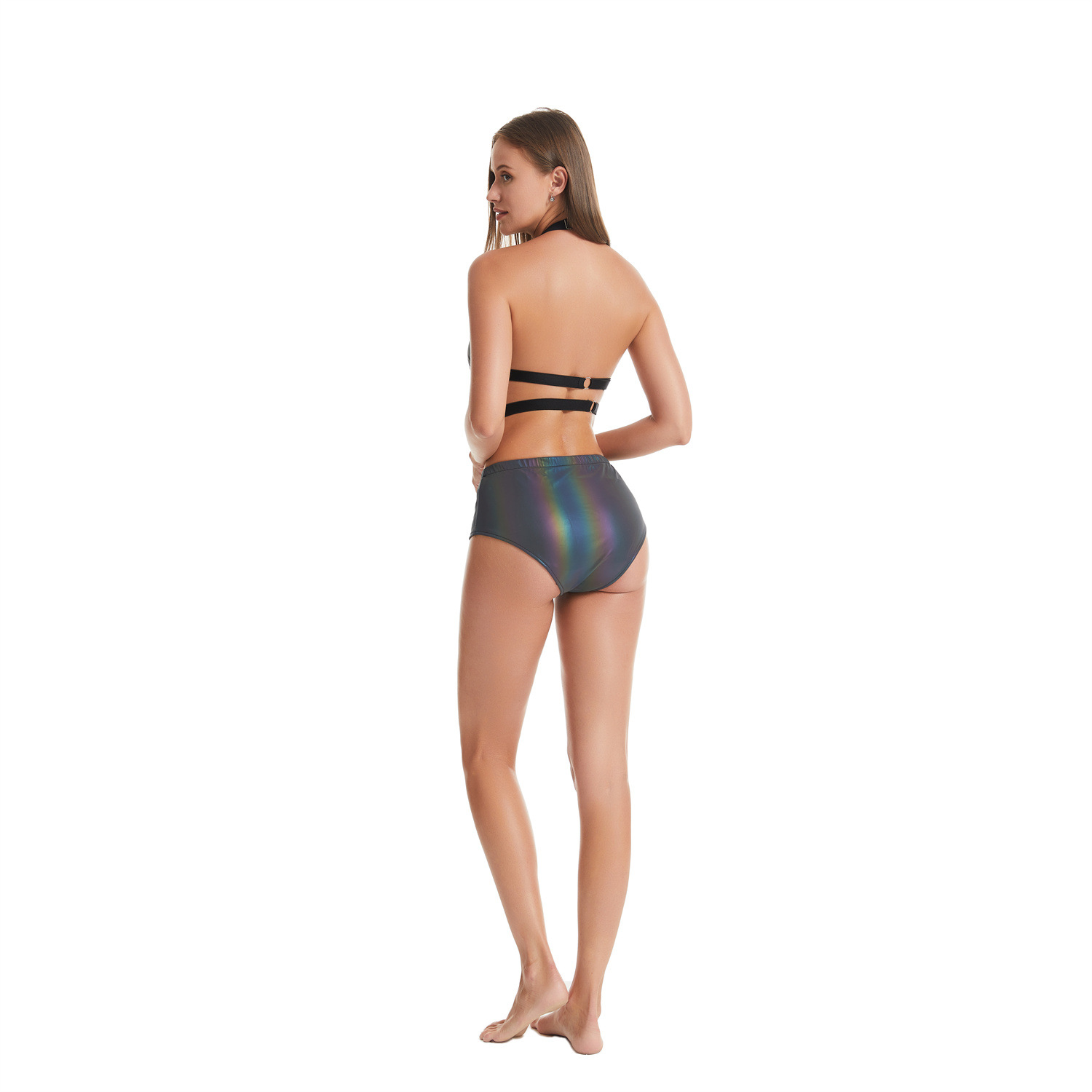 Costume da bagno bikini riflettente colorato con lacci e spacco da donna colorato