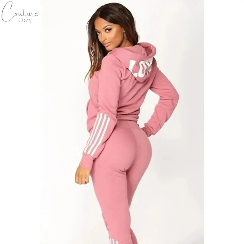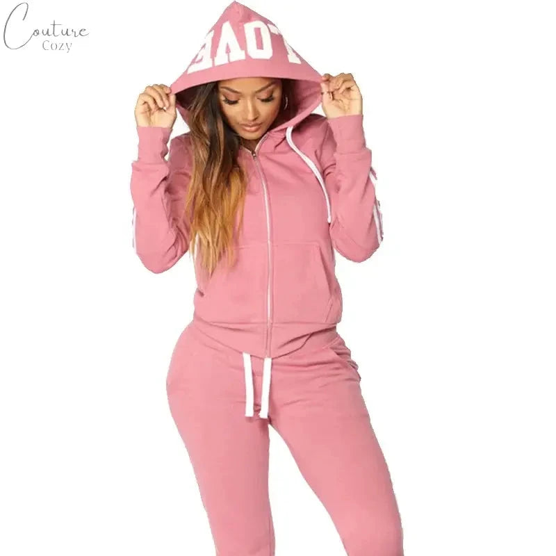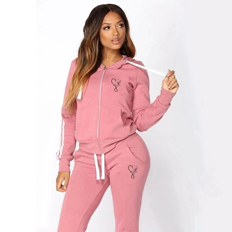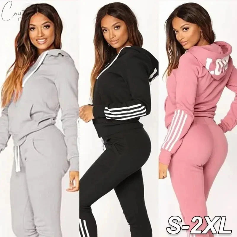 Damski modny zestaw z kapturem i długimi spodniami, dresy, dwuczęściowy strój sportowy do biegania