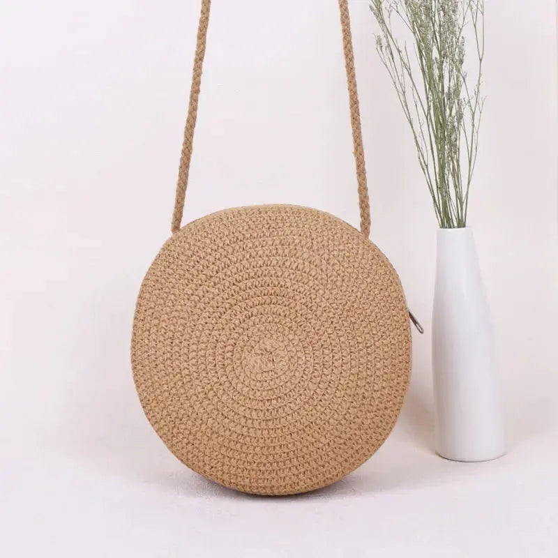 Minimalistyczna słomkowa torebka typu crossbody, okrągła, damska torebka na ramię w stylu Vocation