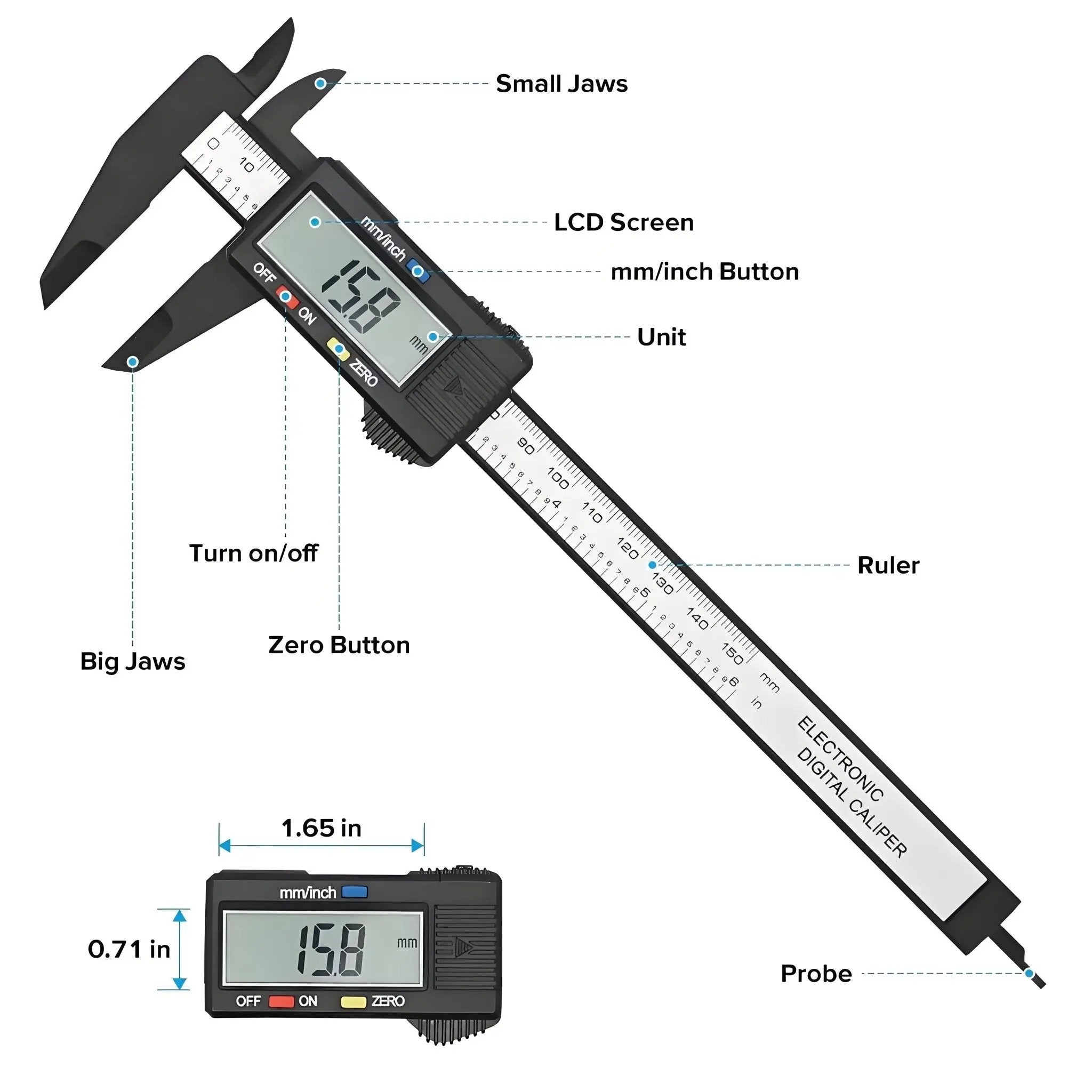Internal and external dimensions can be easily and accurately measured