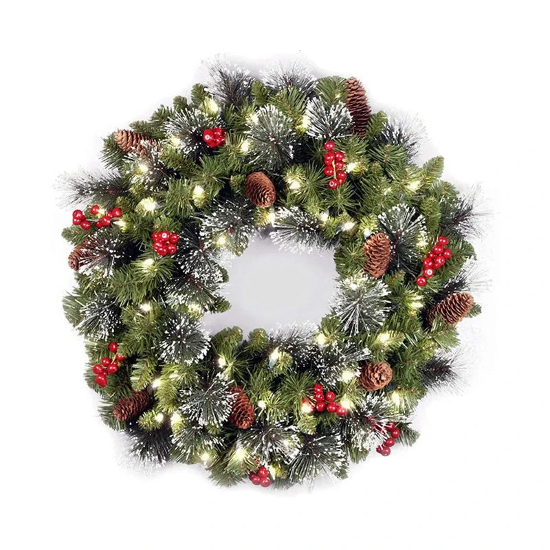 20-60cm LED Christmas Pinecone Wreath with Red Berries Artificial Xmas Wreath New Year Party DIY Decoration Add Christmas Vibe