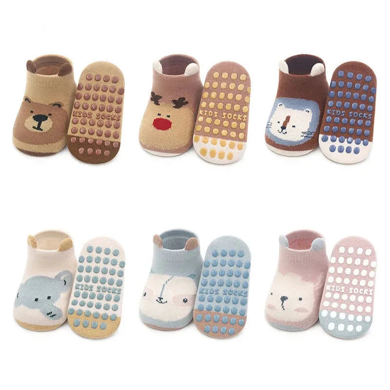 6 Pairs Kids Cotton Socks Non-slip Boys and Girls Cute Cartoon Animal Patterned Comfy Breathable Baby Floor Socks