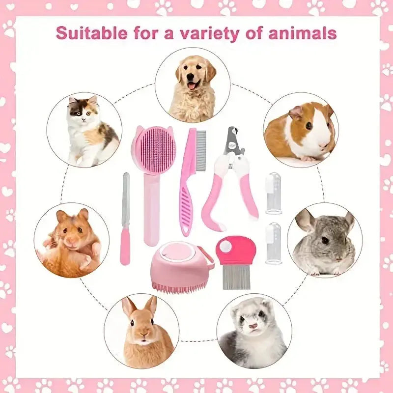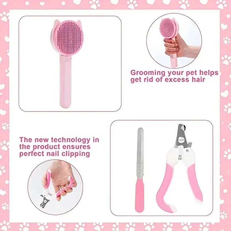 8Pcs Cat Brush Beauty Kit With Pets Nail Clippers Cat Shampoo Bath Brush Cats Shedding and Files Pet Self-Cleaning Kit Flea Comb