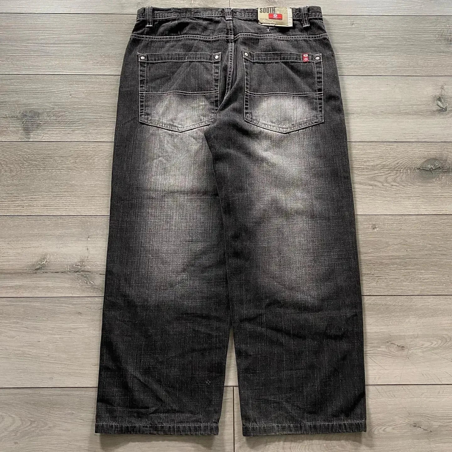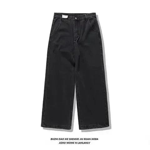 American Hip Hop Retro Gothic Print Jeans Women Y2K New Street Selling Fashion Loose Straight Wide Leg Pants Unisex Joker Jeans