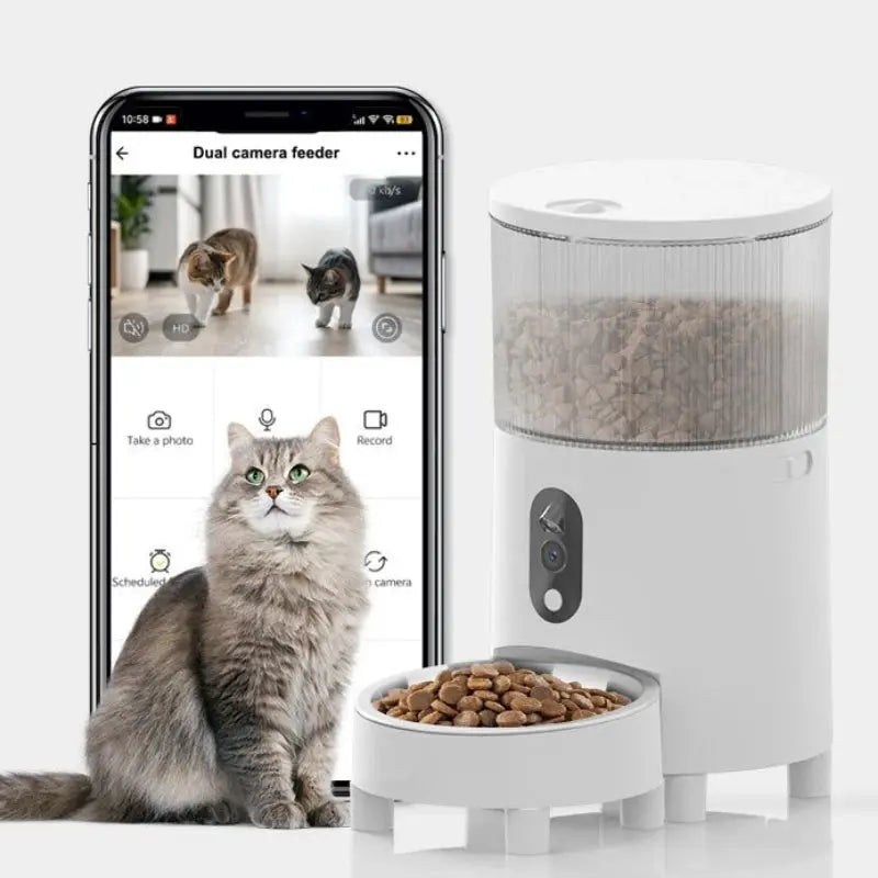 Automatic Cat Feeder with Video Function 4L, dual cameras Intelligent Timed and Quantitative Pet Dog Feeding Machine