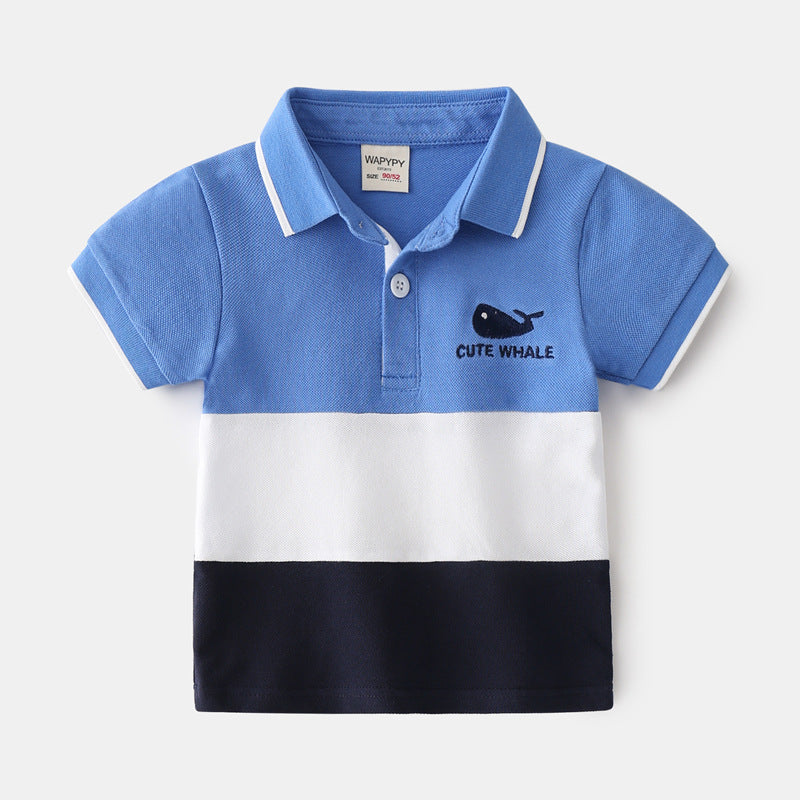 Boys Color Block Lapel Tops Korean Children's Clothing Boys Embroidered Shirts Baby Summer Trends