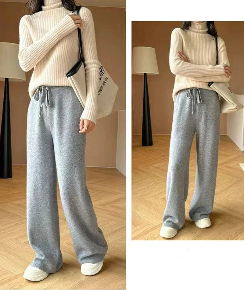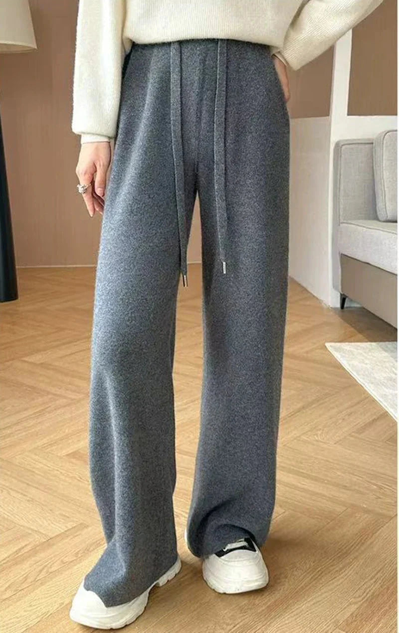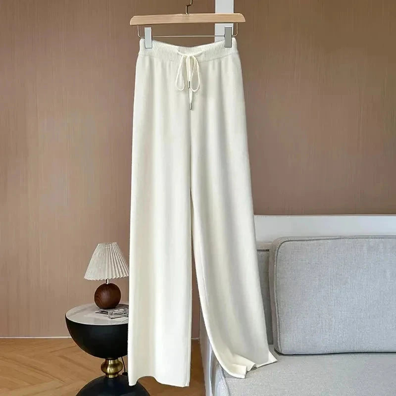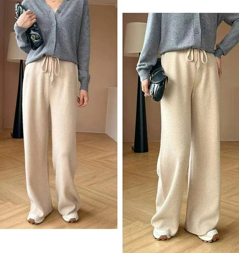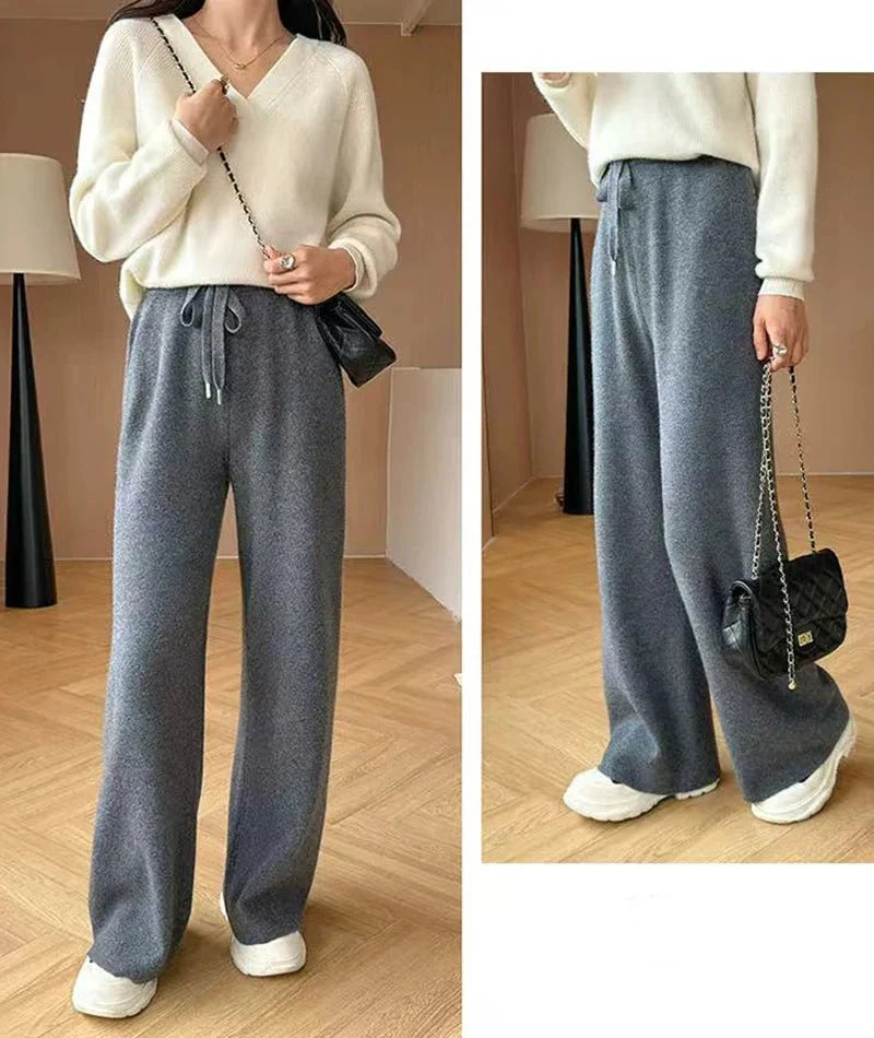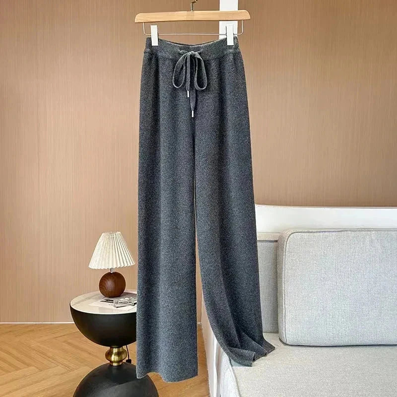 Bxoxo Autumn Casual Wide Leg Pants for Women High Waist Drawstring Soft Warm All Match Pants Korean Solid Simple Straight Trousers New