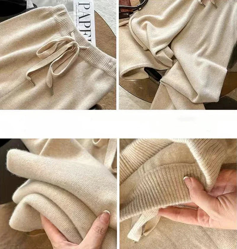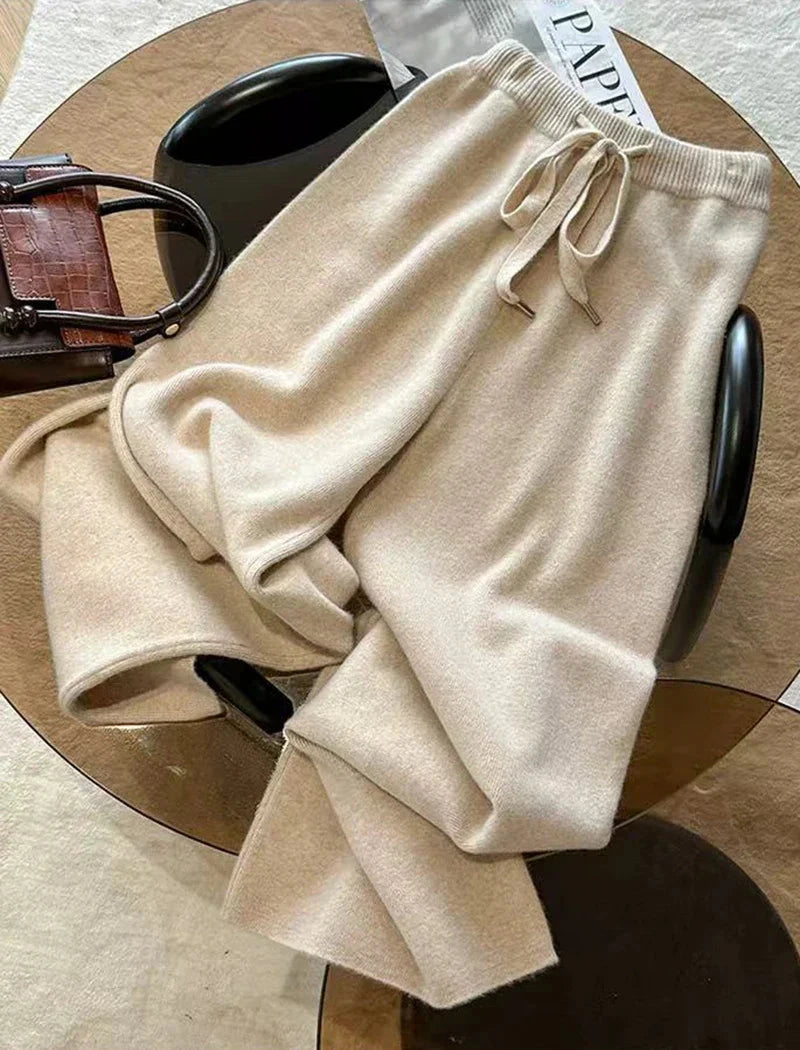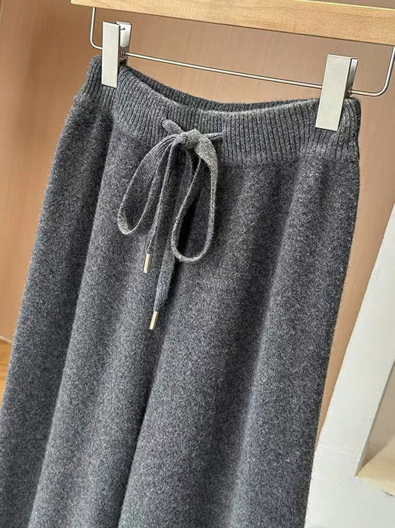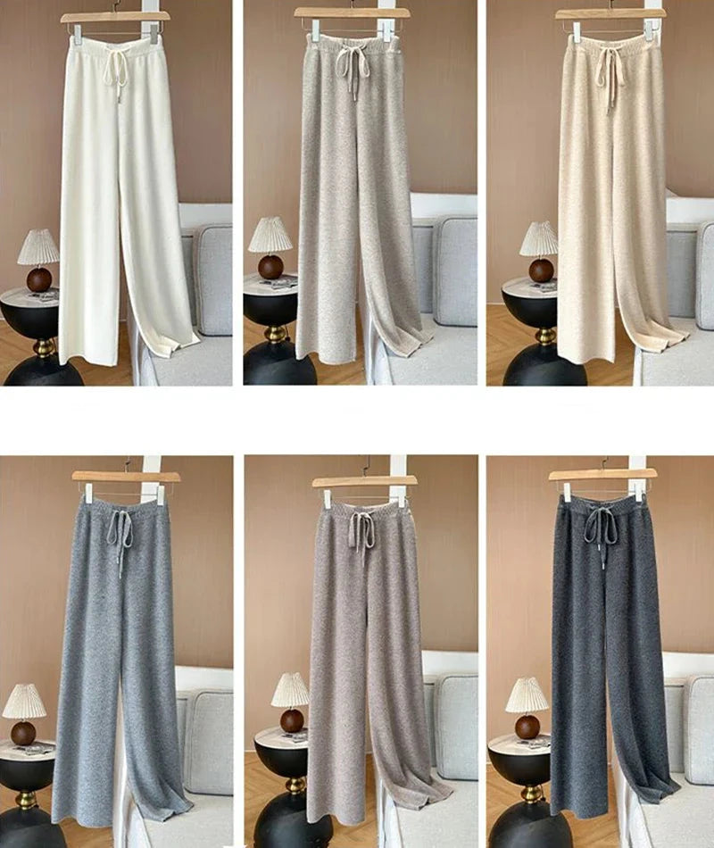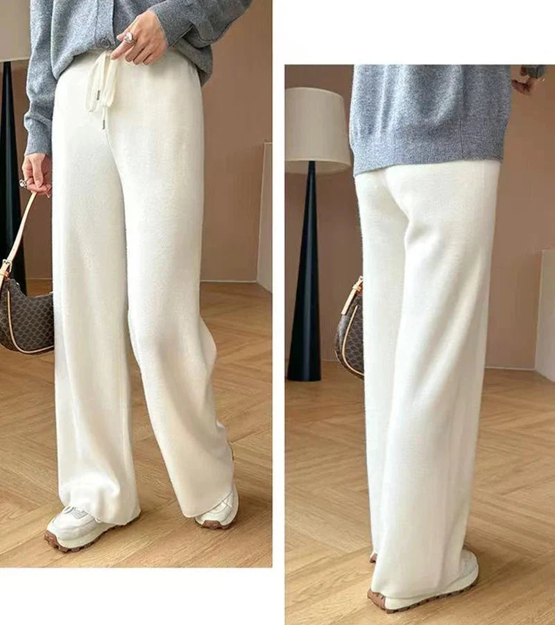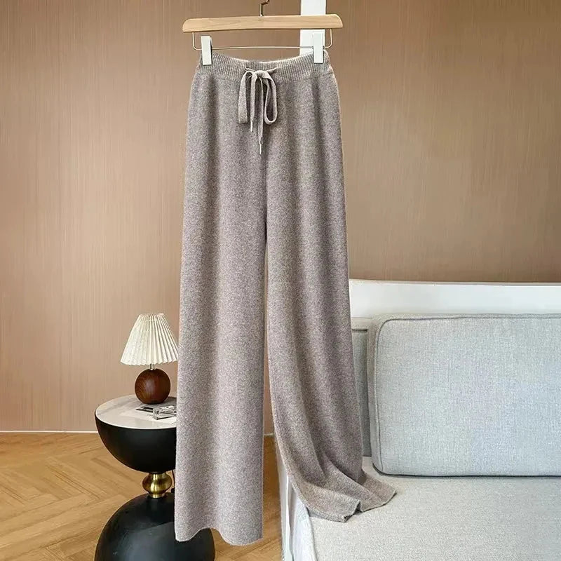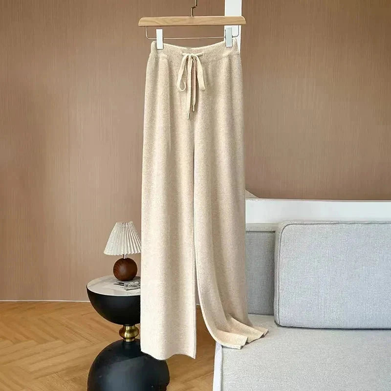 Bxoxo Autumn Casual Wide Leg Pants for Women High Waist Drawstring Soft Warm All Match Pants Korean Solid Simple Straight Trousers New