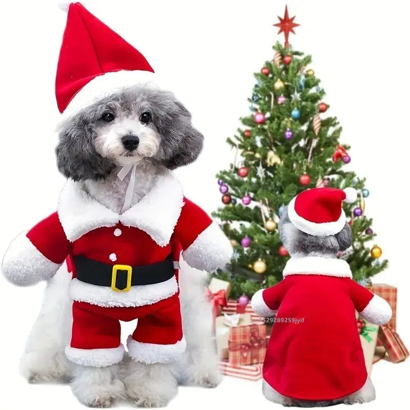 Christmas Santa Claus Pet Costume for Small Dogs & Cats Cozy Apparel Pet Outfit Coat Suit with Cap Winter Warm Clothing Cosplay