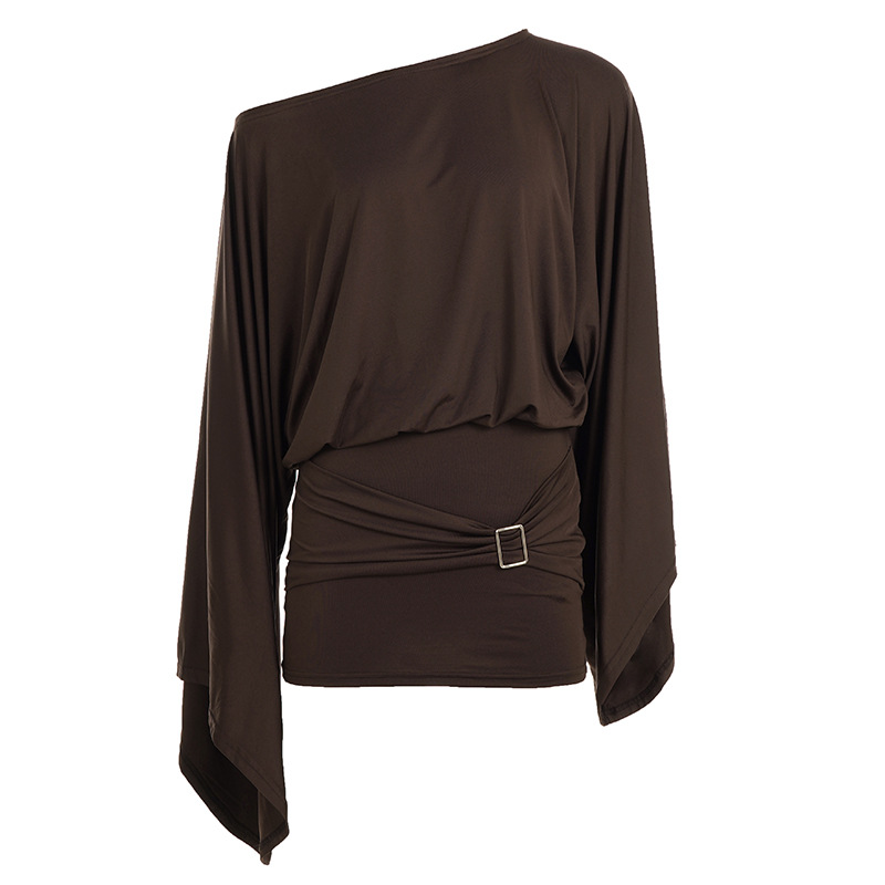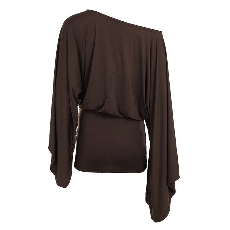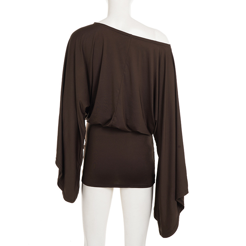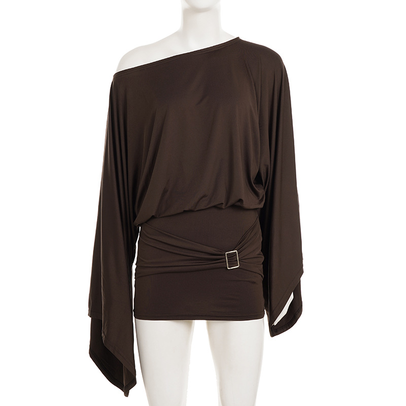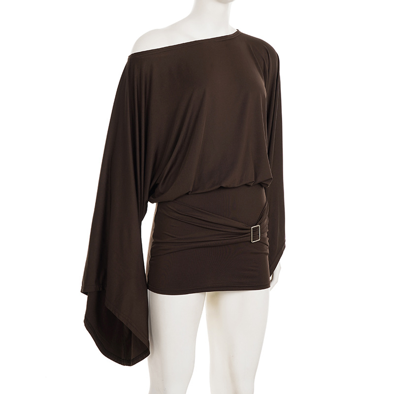 Classical European And American Style Slant Shoulder Loose Bell Sleeve Dress
