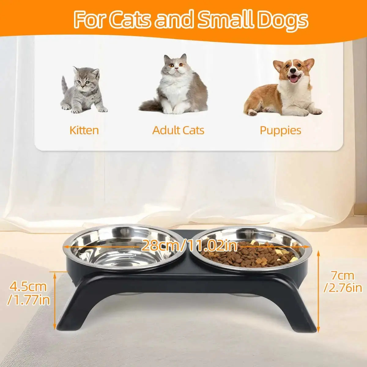 Elevated Pet Bowl with Two Stainless Steel Bowls—Perfect for Small and Medium-Sized Dogs and Cats