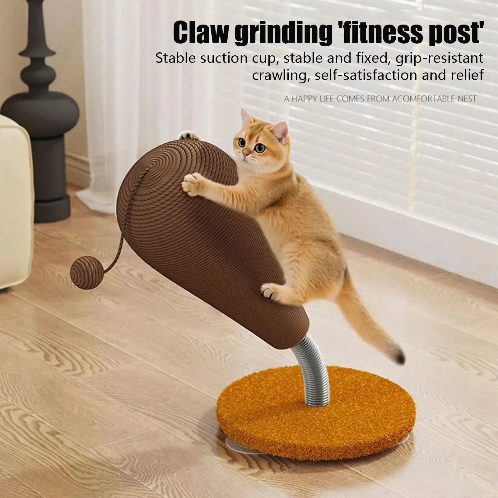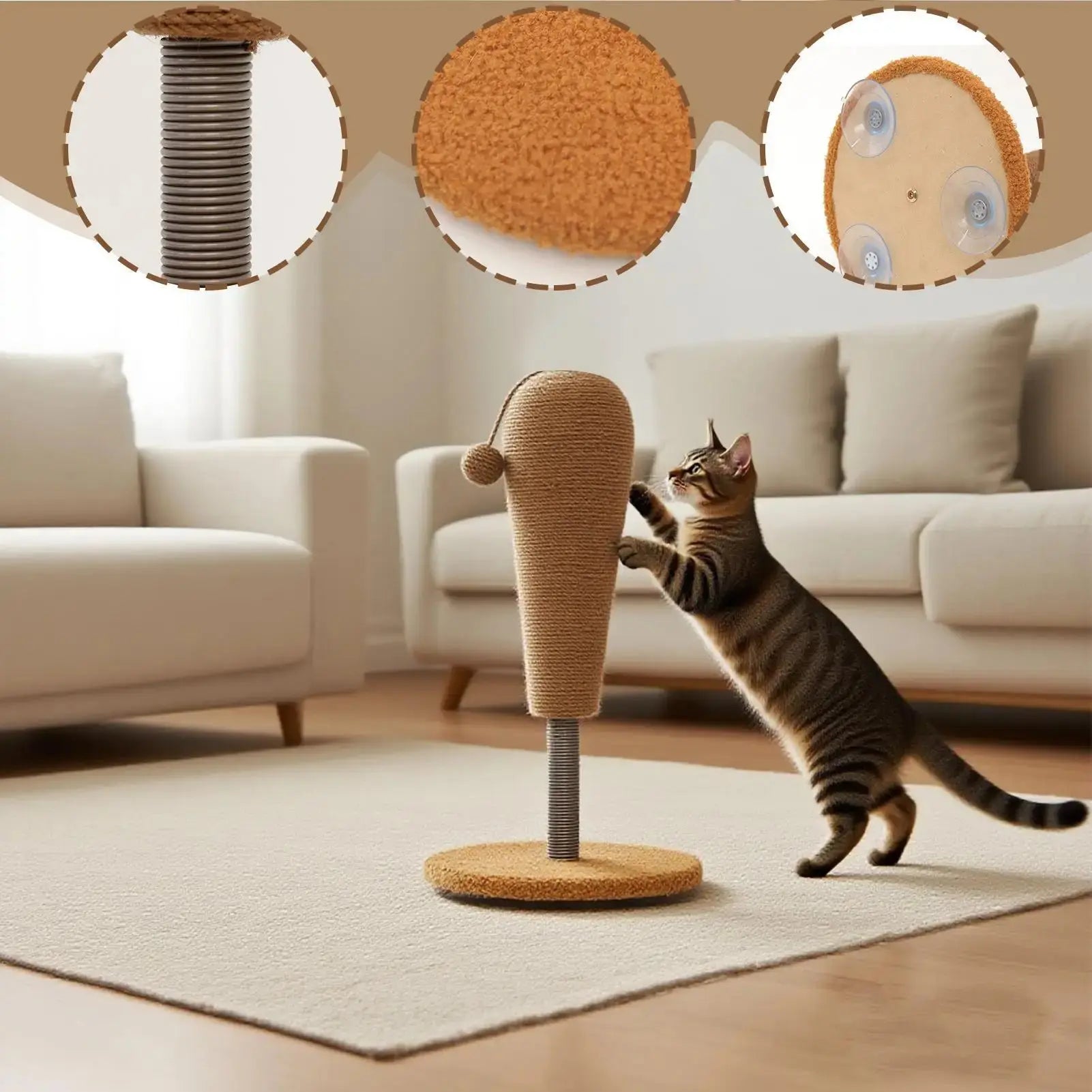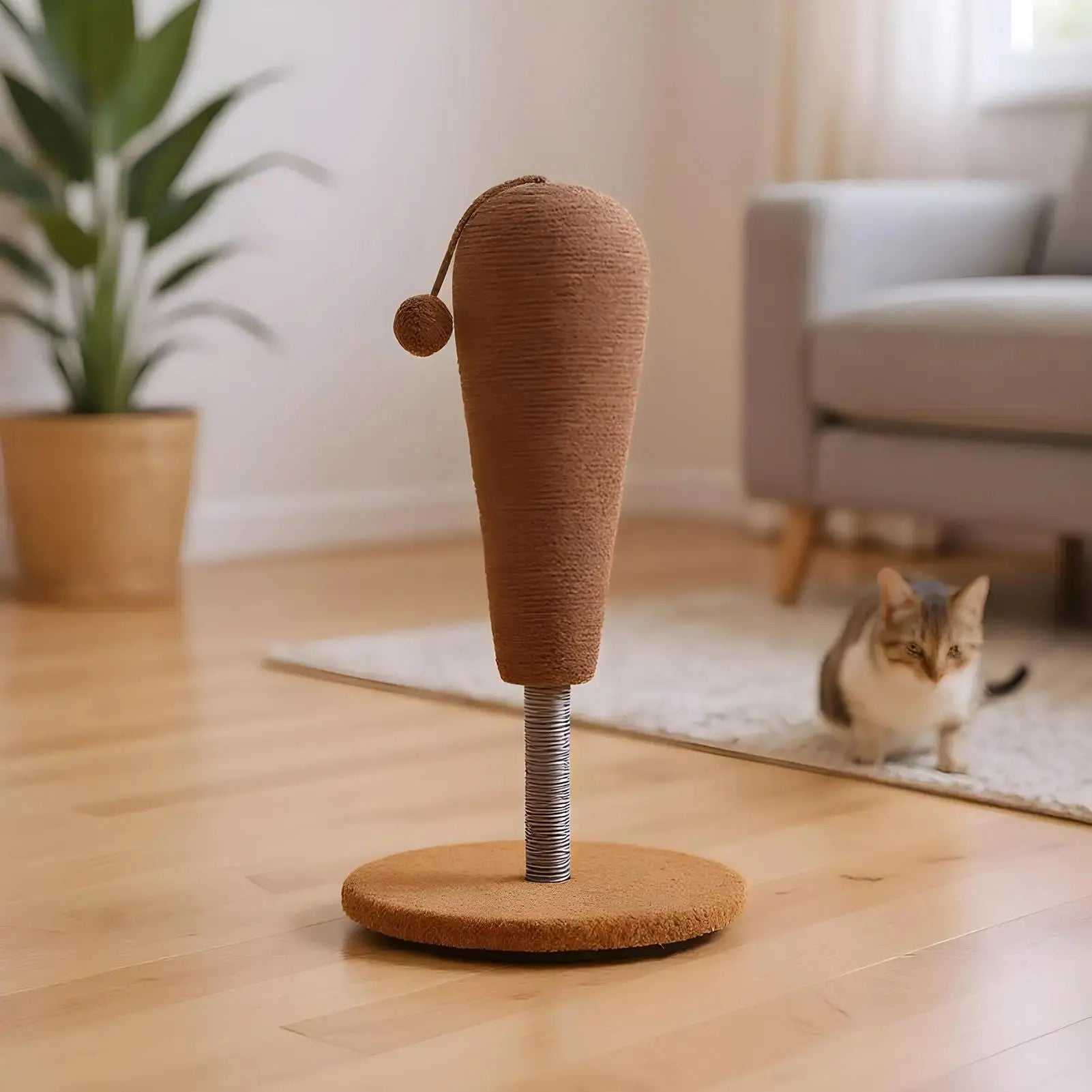 Kitten Scratching Post Vertical Scratcher Furniture Protector Interactive Toys with Suspending Ball for Play Area Indoor