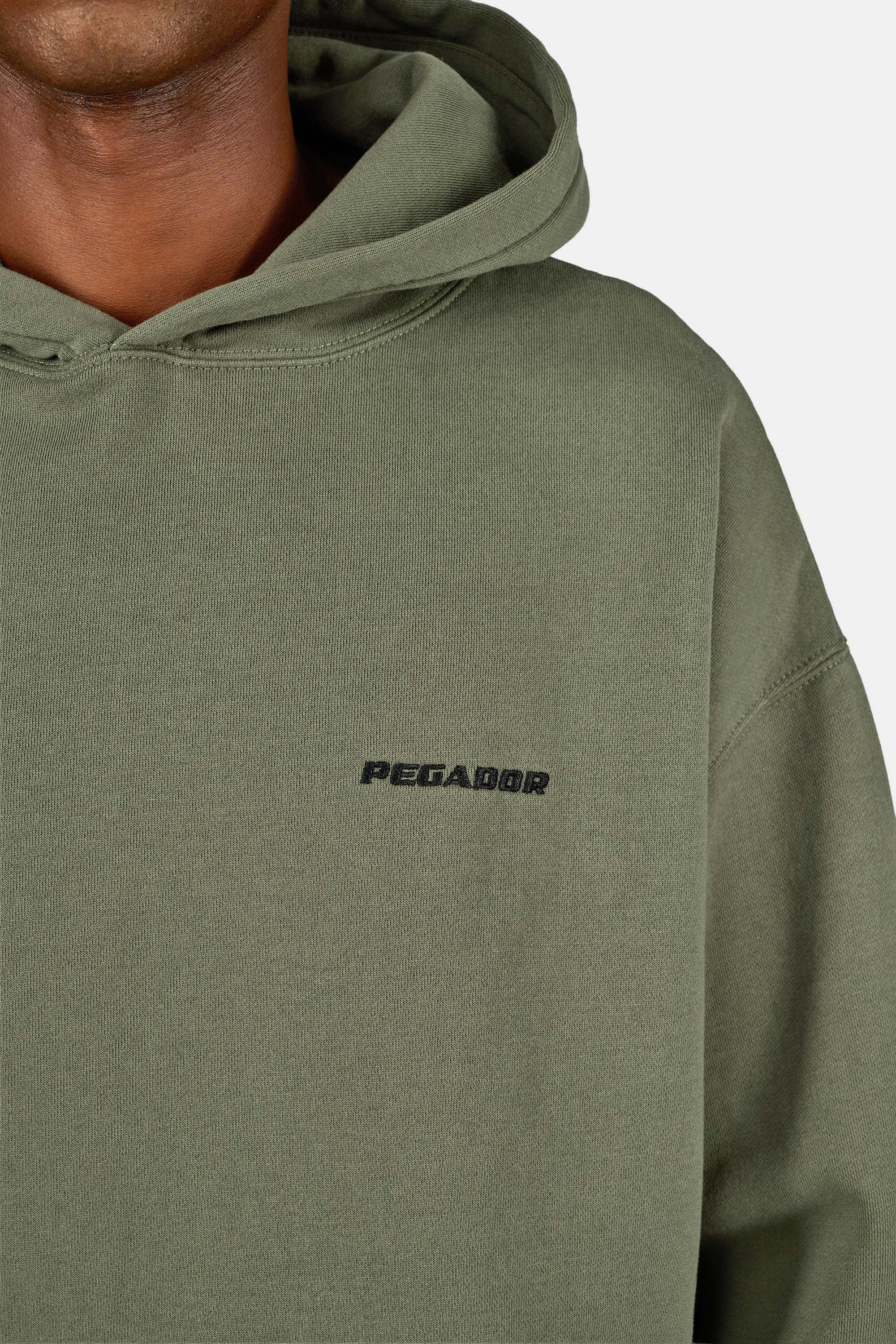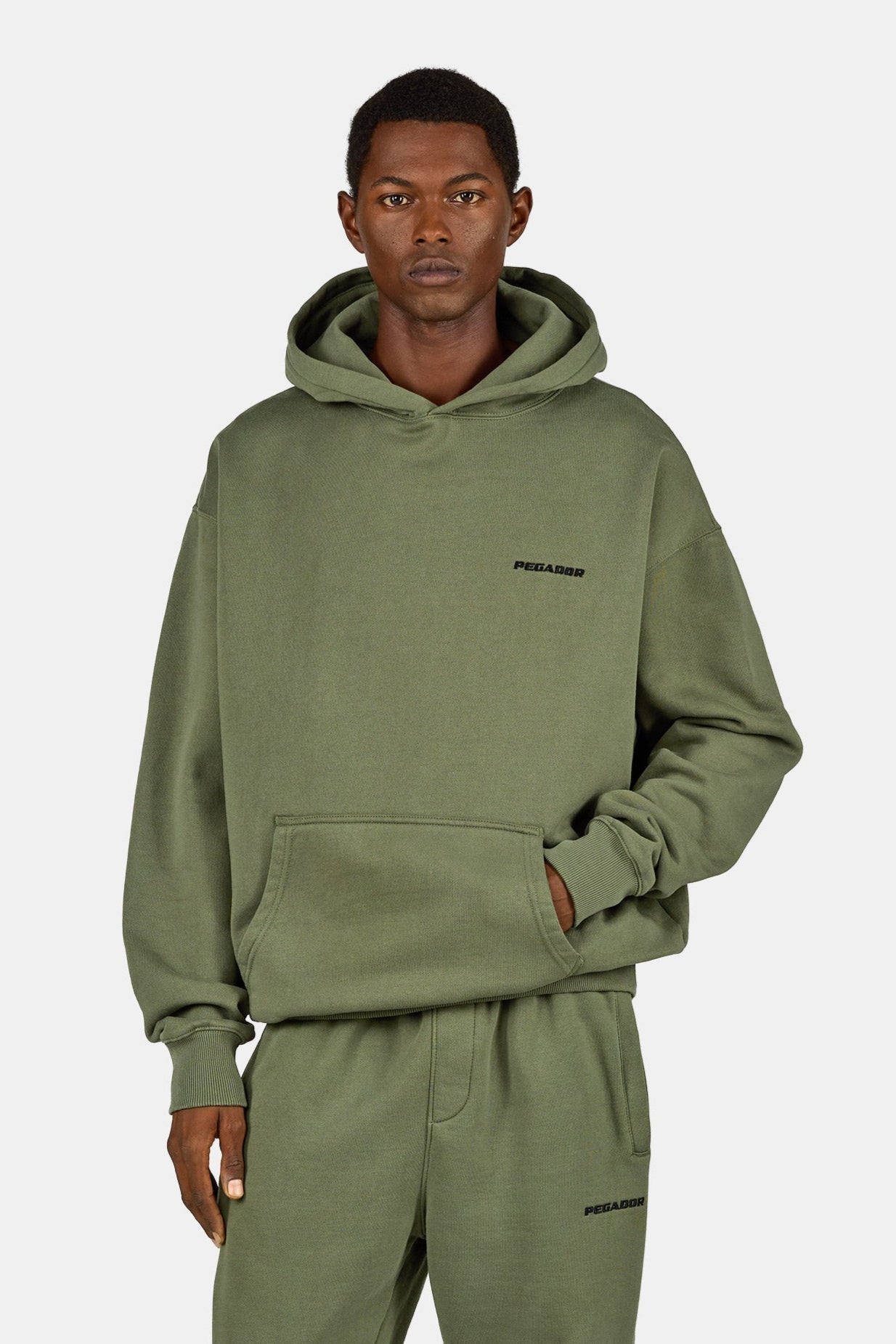 faded olive farbiger gewaschener Hoodie oversized Fit fallende Schultern Logo Stick auf der Vorderseite Bündchen an Ärmeln und Saum Kängurutasche... Lesen Sie mehr