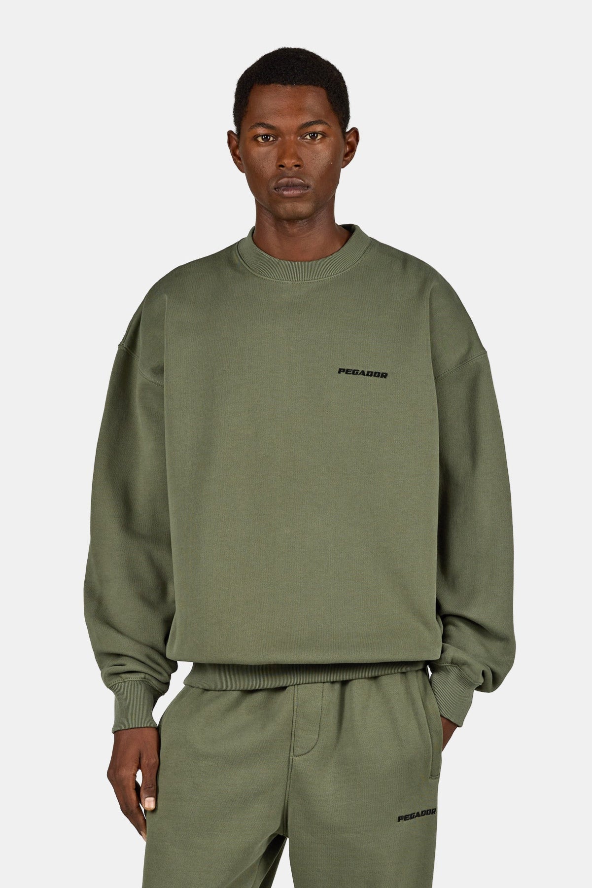 faded olive farbiger gewaschener Sweater oversized Fit fallende Schultern Logo Stick auf der Vorderseite Bündchen an Ärmeln und Saum 380... Lesen Sie mehr