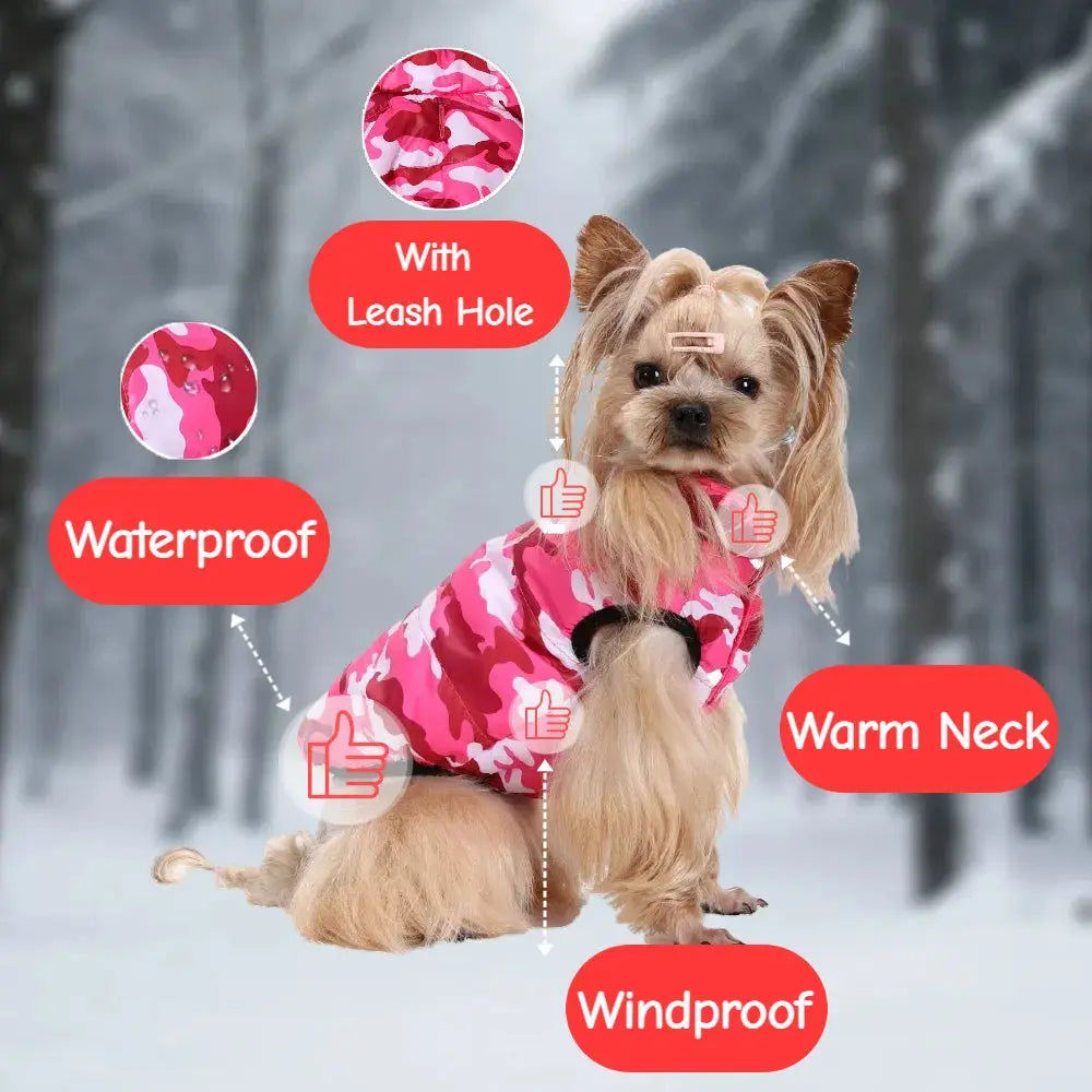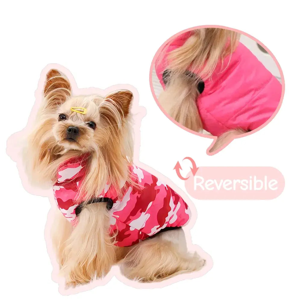 Reversible Winter Dog Jacket for Small Medium Dogs Warm Camouflage Print Pet Coat With Leash Hole Solid Color Yorkshire Parka