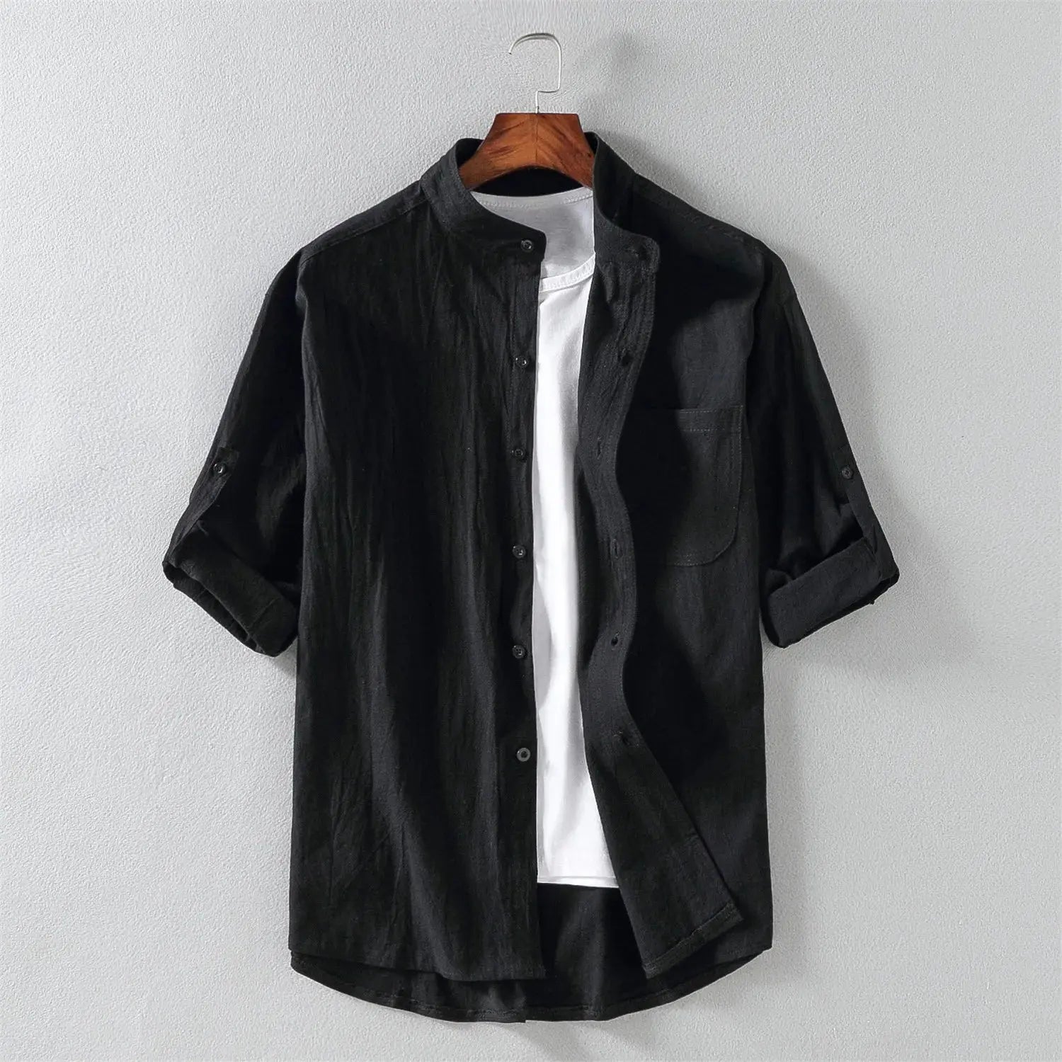 Spring and Summer Stand Collar Five-point Mid-sleeve Fashionable Men's Short-sleeved Shirt Seven-point Sleeve Large Size Men's