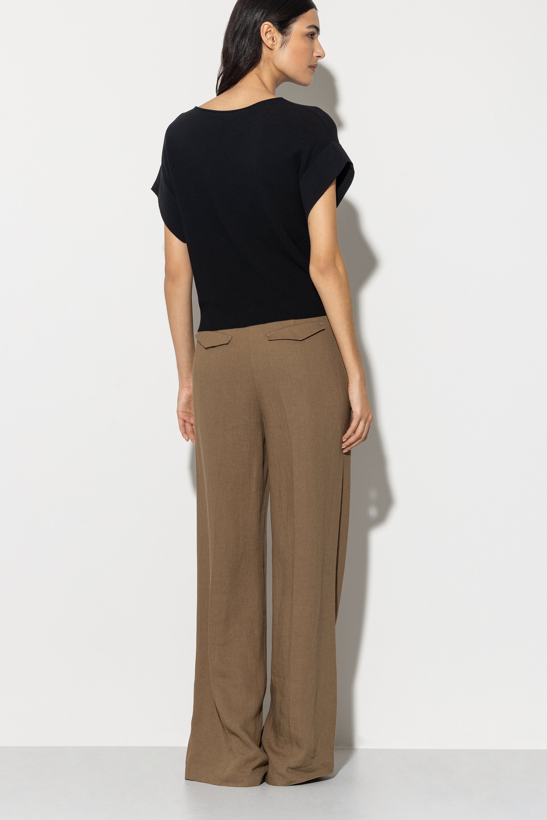 Hose aus fein gewebtem, fließend fallendem Leinen-Mix mit betont weitem Bein und Bügelfalten. Der teilelastische Bund, zwei Eingrifftaschen sowie zwei... Lesen Sie mehr