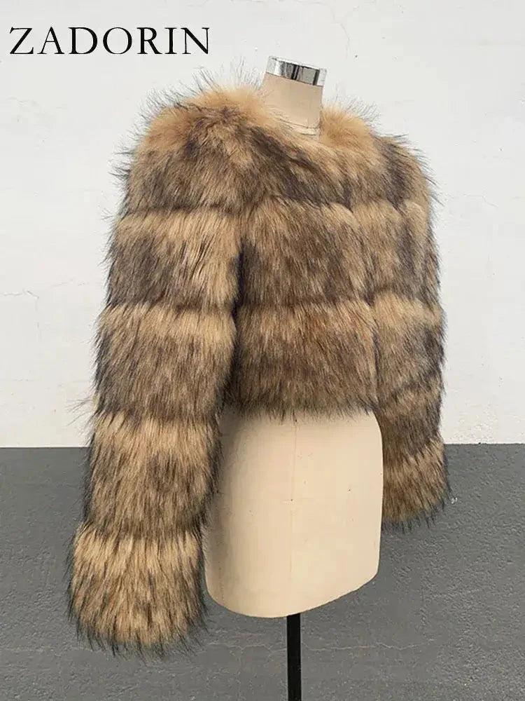 ZADORIN High Quality Cropped Faux Raccoon Fur Coat Women Winter