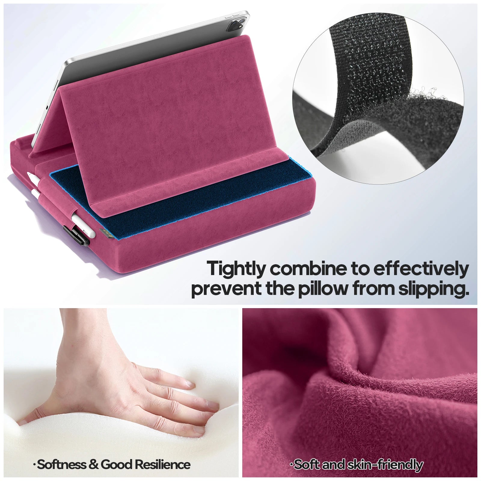 KDD Upgraded Tablet Pillow Stand Multi-Angle Viewing Ipad Holder for Lap Bed and Desk Foldable Soft Pad Dock with Stylus Mount